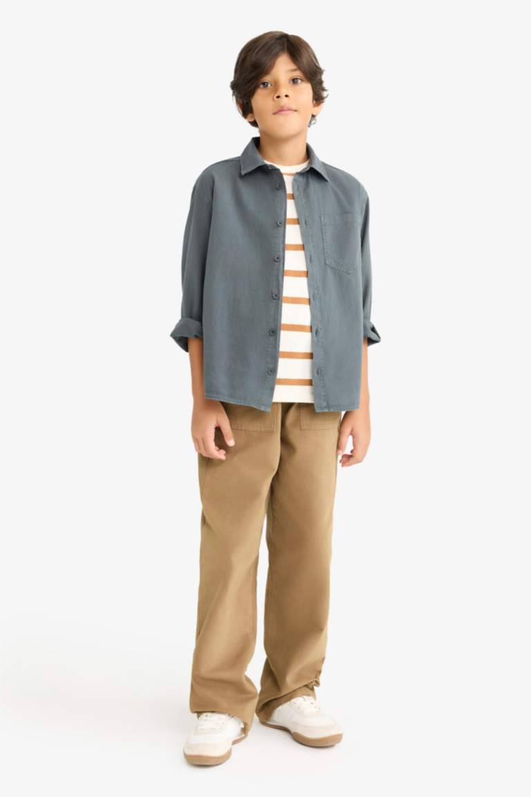 Boys’ Oversized Fit Long Sleeve Polo Shirt