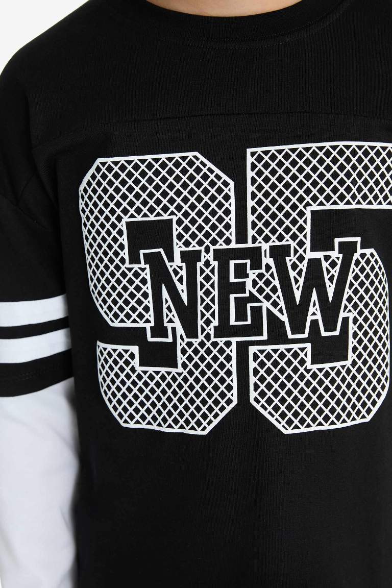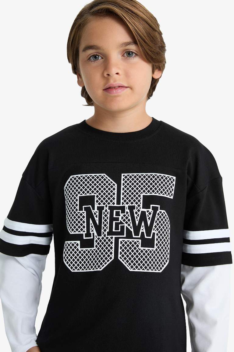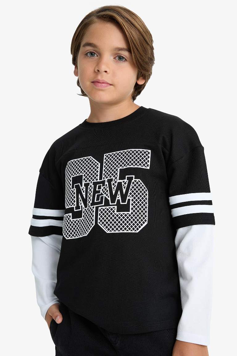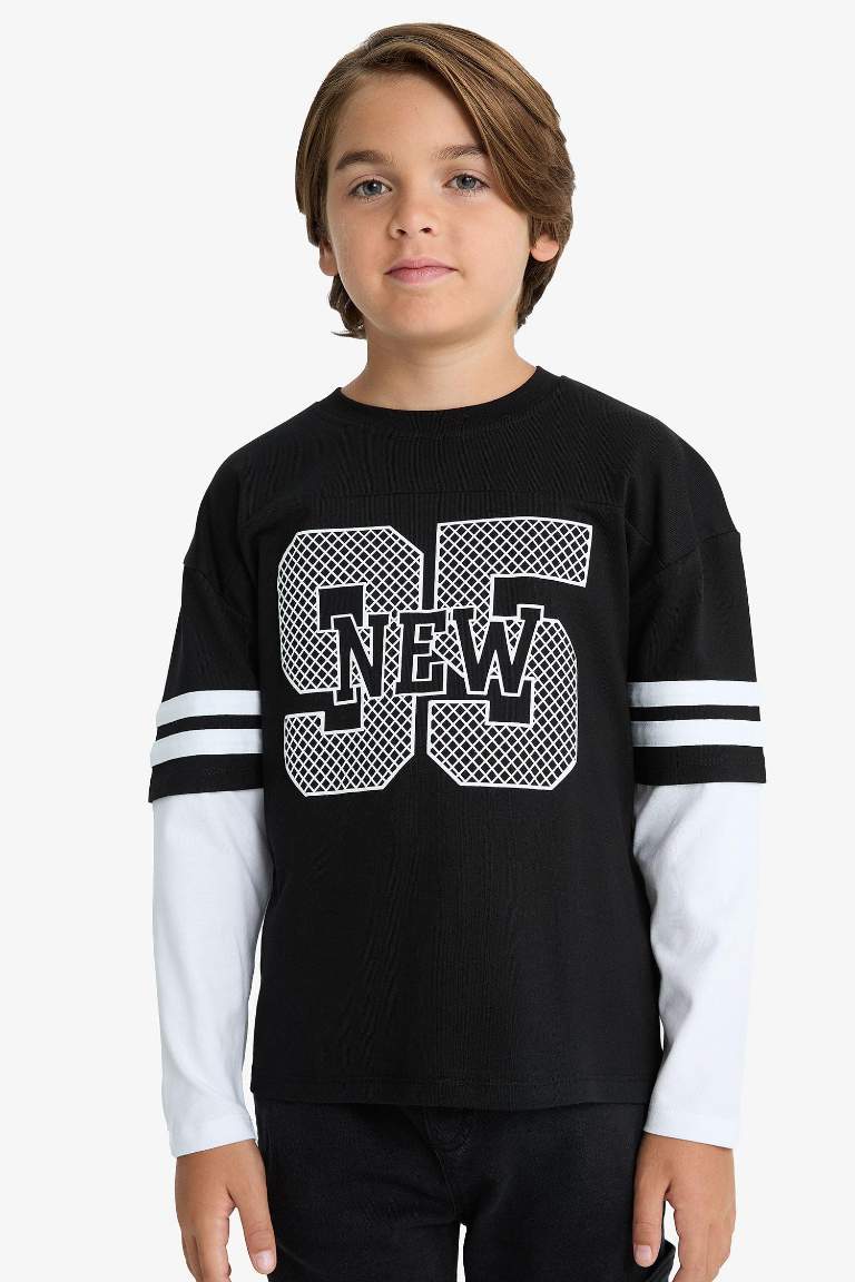 Boys' Oversized Wide Fit Printed Long Sleeve T-Shirt