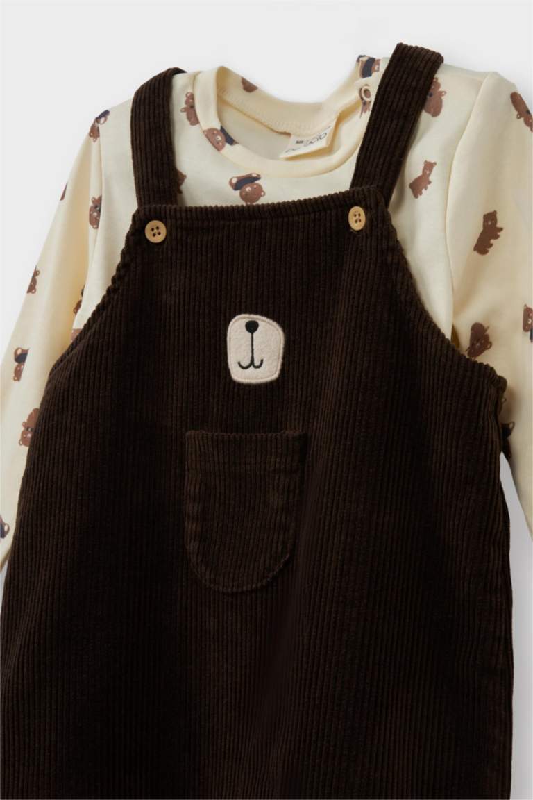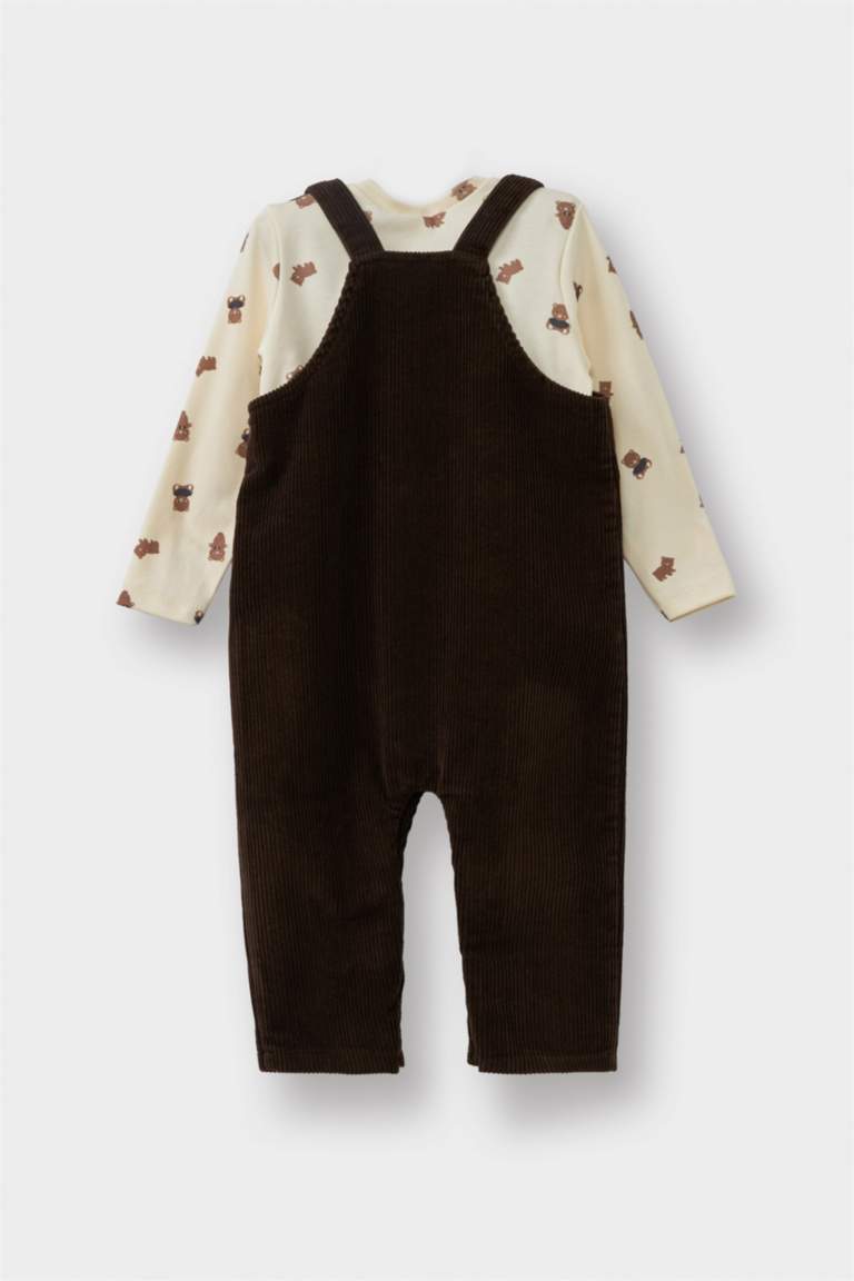 Boys’ Two-Piece Set with Bear Print Long Sleeve T-Shirt and Velour Overalls