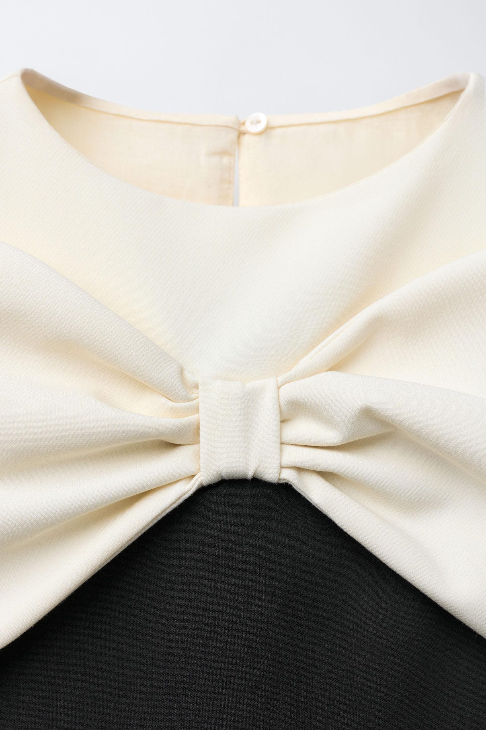 This charming sleeveless dress features a delightful round neckline and a buttoned teardrop opening at the back for easy dressing. The adorable front bow appliqué adds a touch of whimsy, making it perfect for special occasions or everyday wear. With a soft tonal inner lining, your little one will stay comfortable and stylish all day long in this lovely piece.