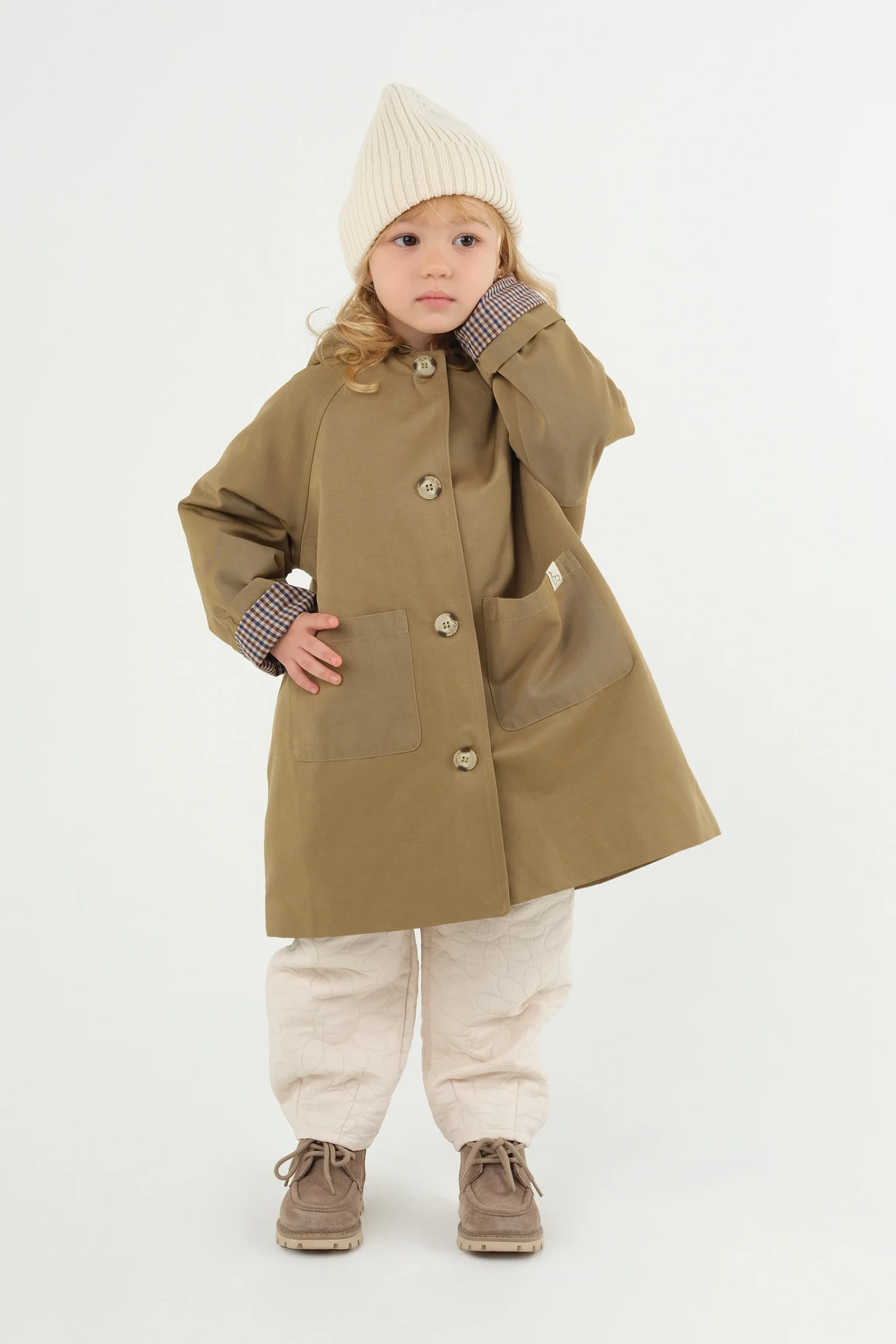 Keep your little ones stylish and cozy in our Hooded Checkered Lined Trench Coat in Olive. Crafted from soft cotton canvas, this trendy trench features a button front, a spacious hood, and comfortable raglan sleeves, making it perfect for playdates and outdoor adventures. Available in various sizes for ages 2 to 8, this coat combines functionality with fashion, ensuring your child stays warm while looking great!