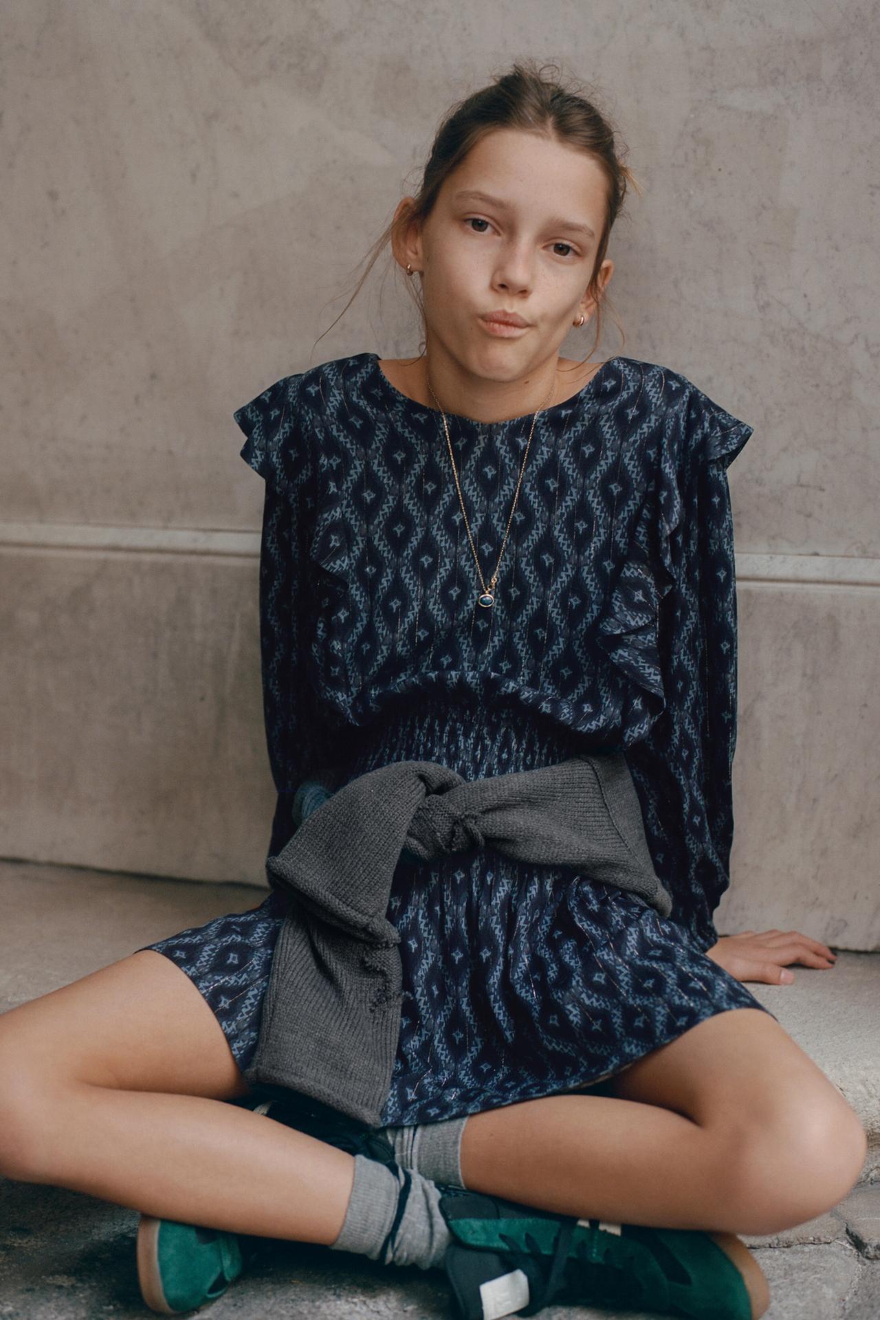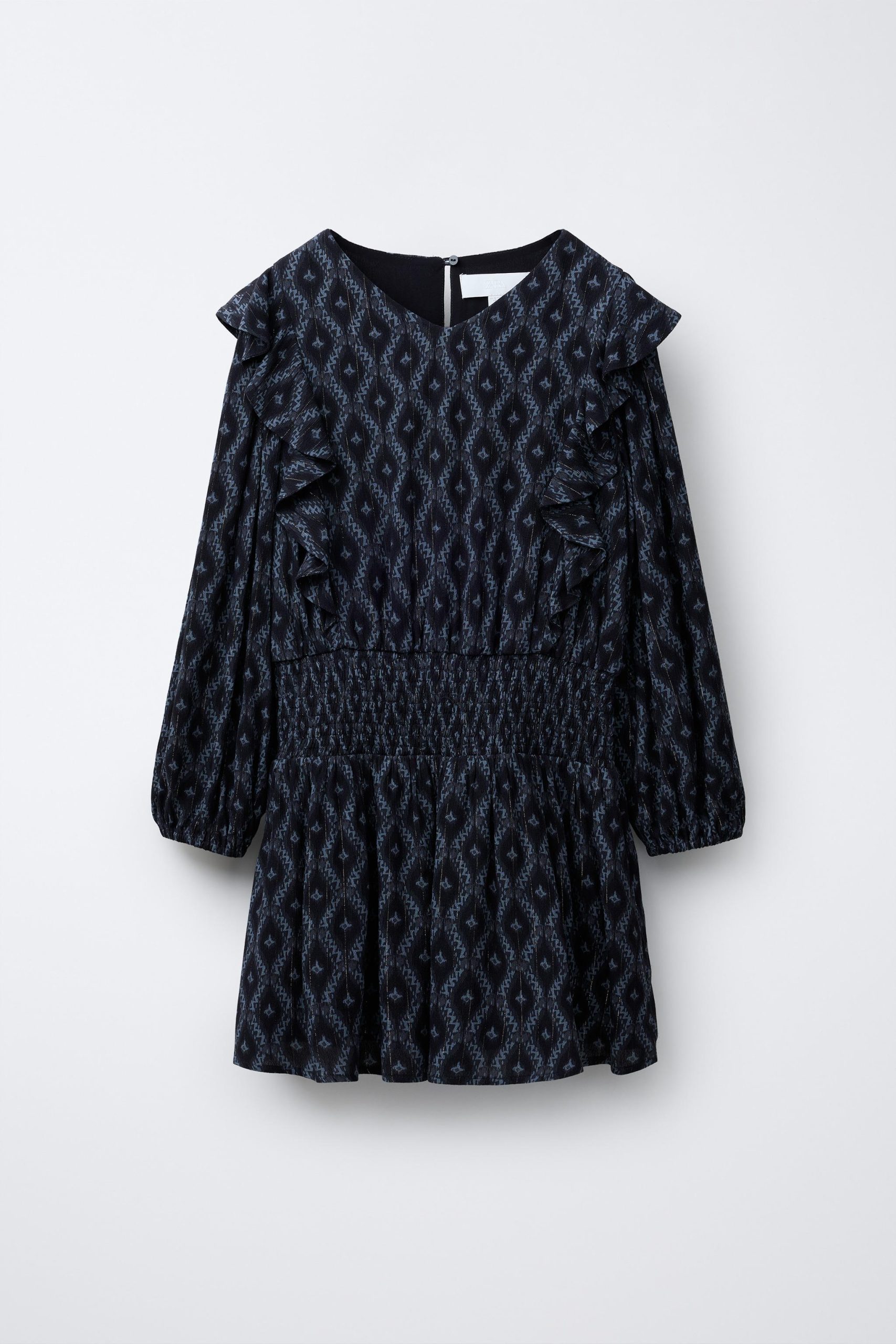 Elevate your child’s wardrobe with this charming Ikat Print Dress, designed for comfort and style. Featuring a classic round neckline and long sleeves with elasticated cuffs, this dress is perfect for all-day wear. The delightful ruffle appliqués on the shoulders add a touch of whimsy, while the teardrop button fastening at the back ensures an easy fit. Ideal for special occasions or everyday adventures, this dress combines playful patterns with a comfortable fit, making it a must-have for your little fashionista.