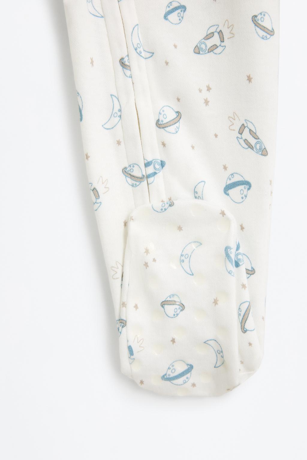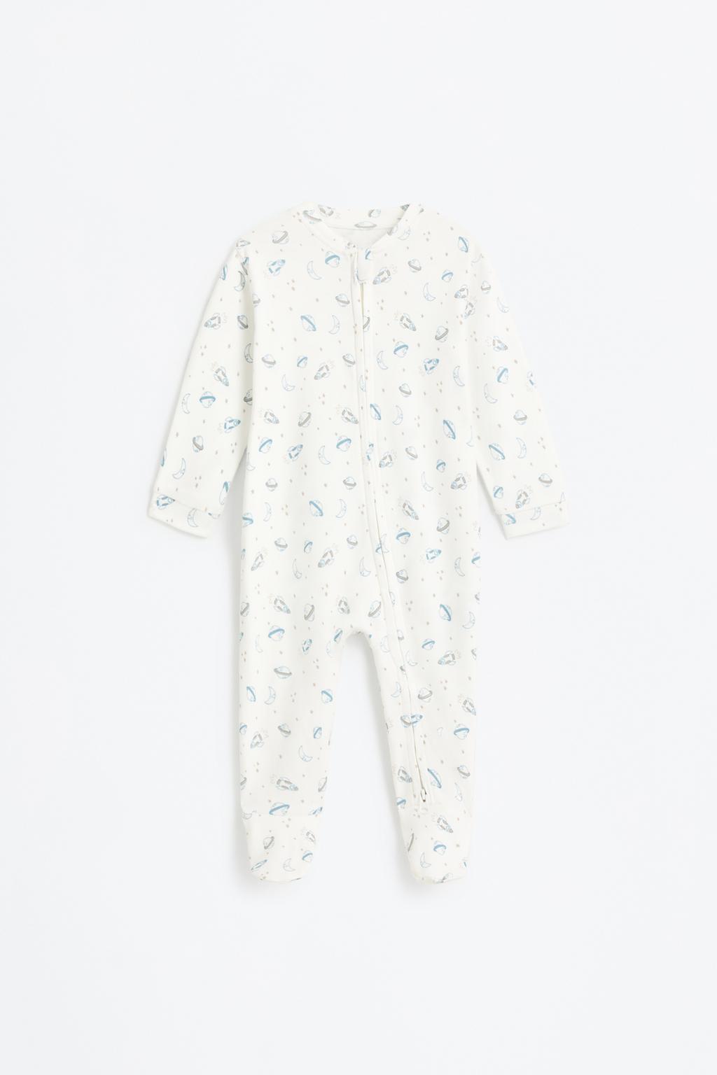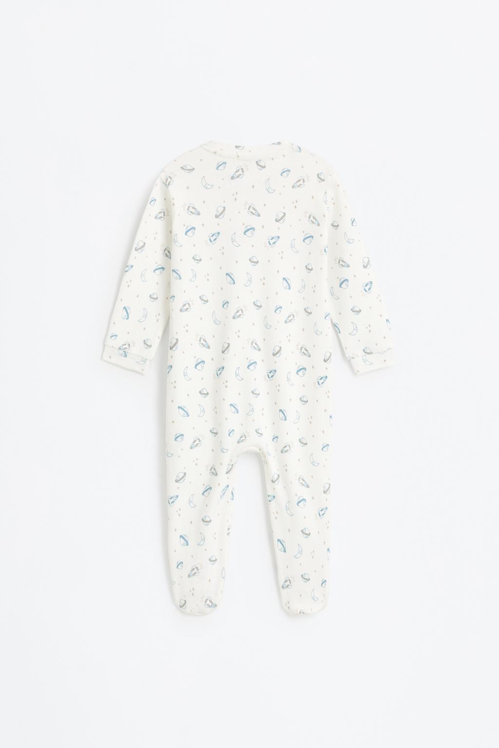 This adorable interlock pajama onesie features a cozy closed-foot design, a classic crew neck, and long sleeves, making it perfect for keeping little ones snug during bedtime. Adorned with charming little patterns, it is crafted from 100% cotton interlock fabric, ensuring a soft and breathable experience for your child. Available in a lovely ecru color, this onesie is a delightful addition to any child’s sleepwear collection.