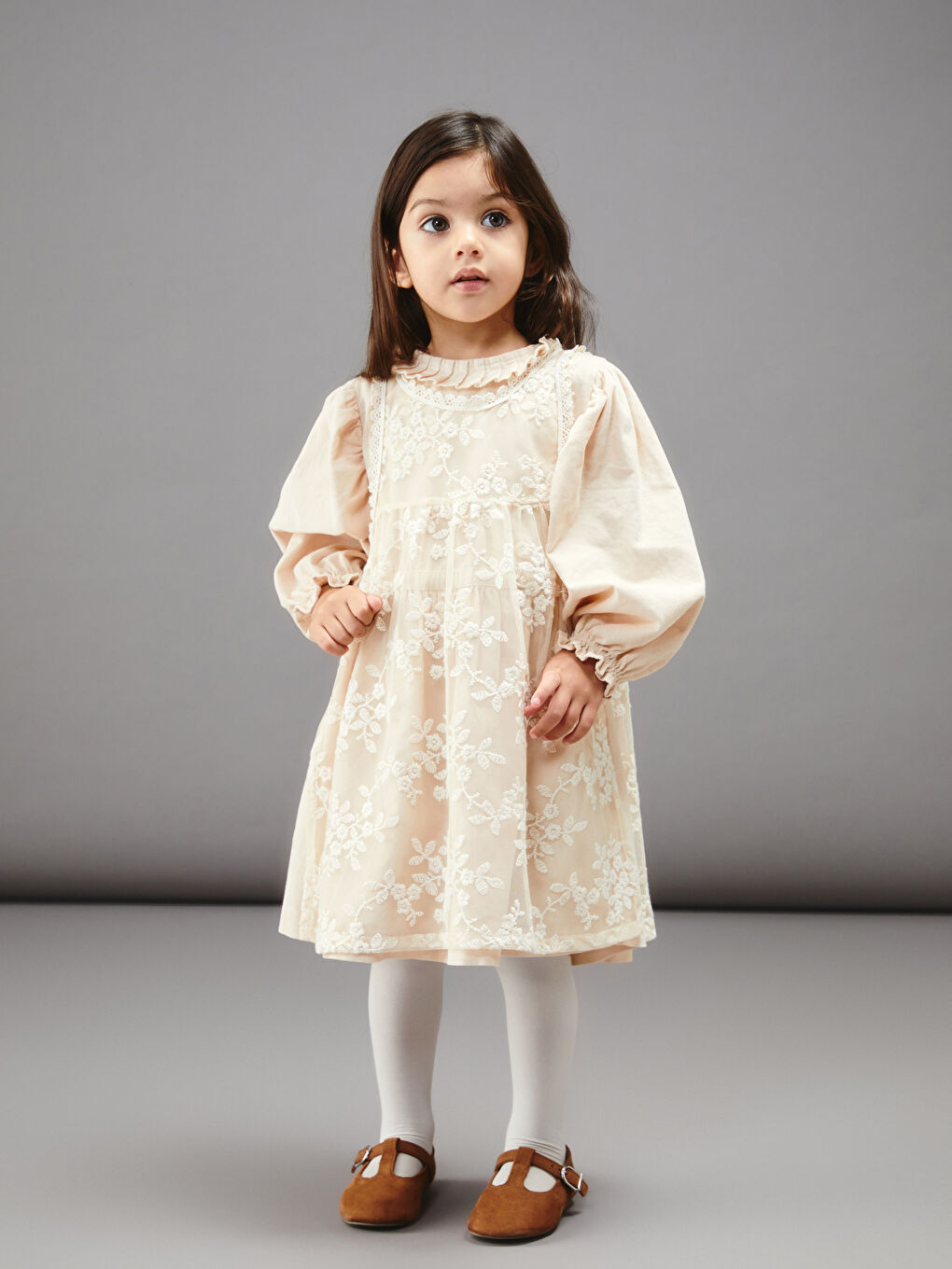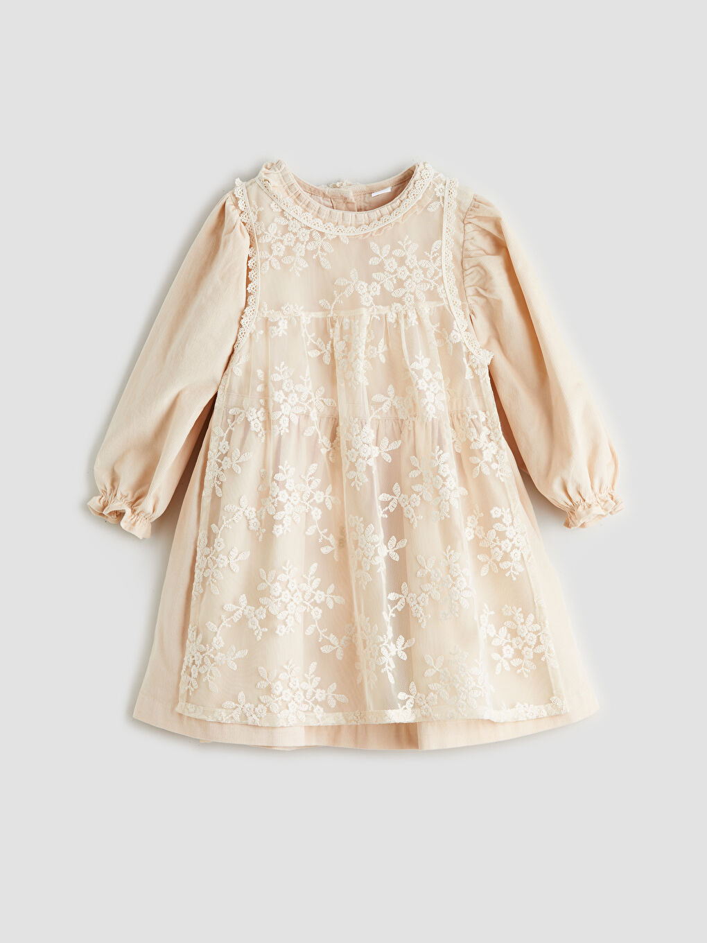 LCW baby Bej Bisiklet Yaka Çiçekli Kız Bebek Elbise