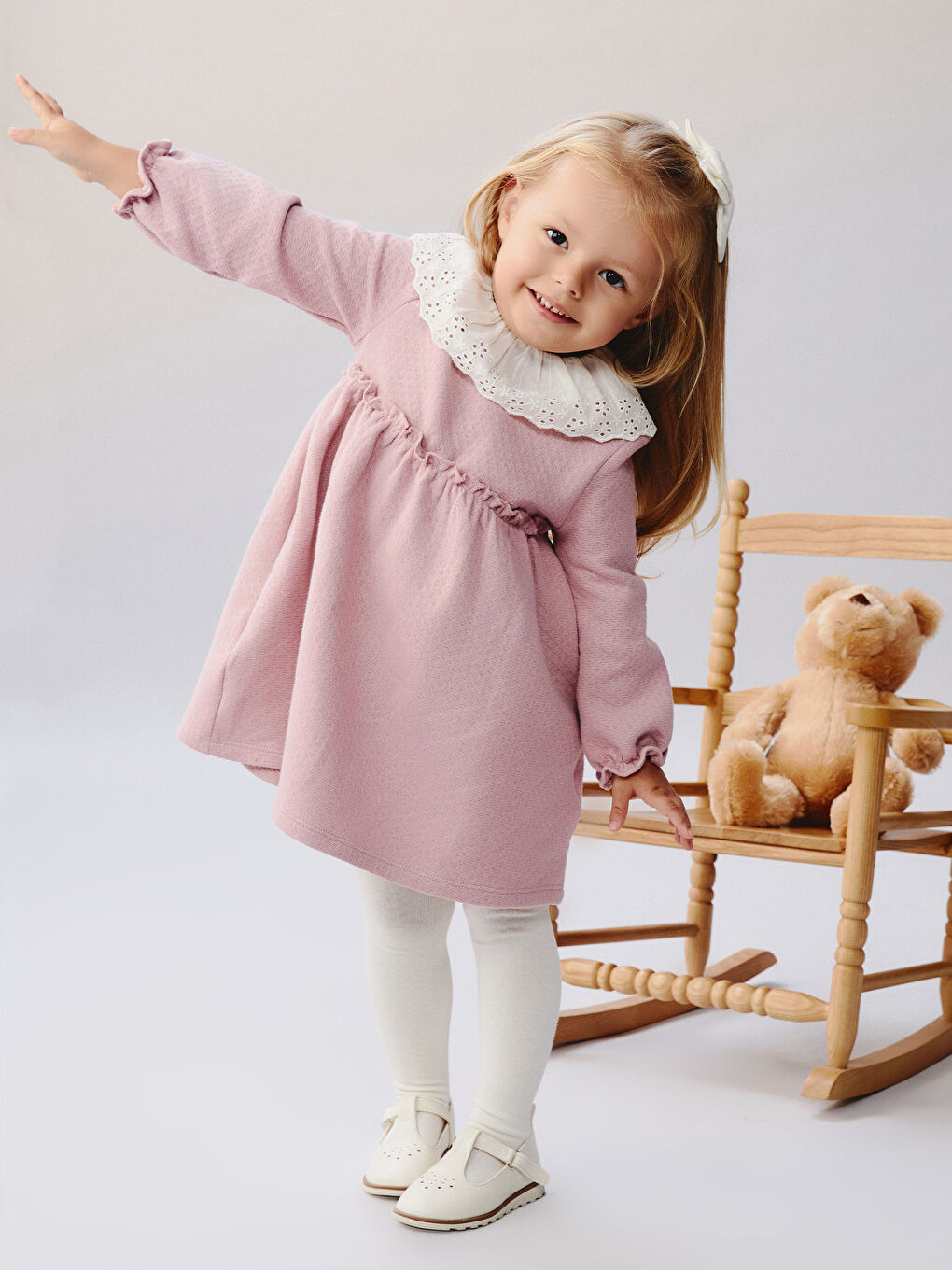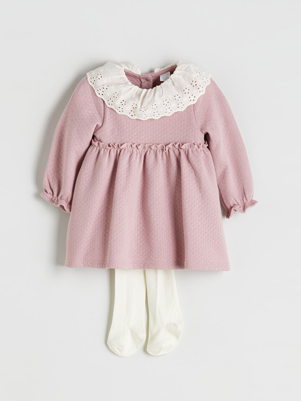 LCW baby Pembe Bebe Yaka Kız Bebek Elbise Ve Külotlu Çorap