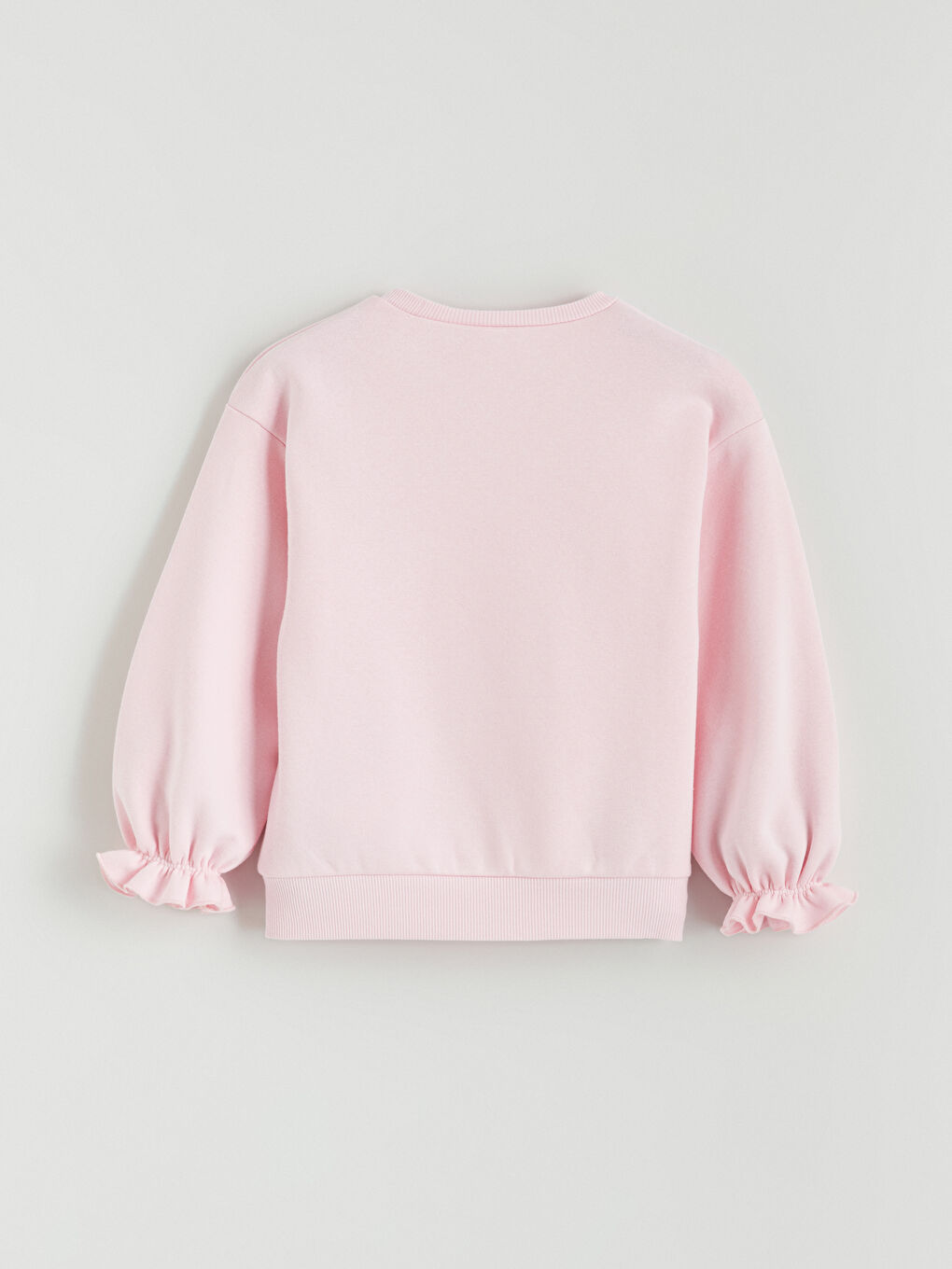 LCW Baby Pink Crew Neck Barbie Embroidered Girls Sweatshirt