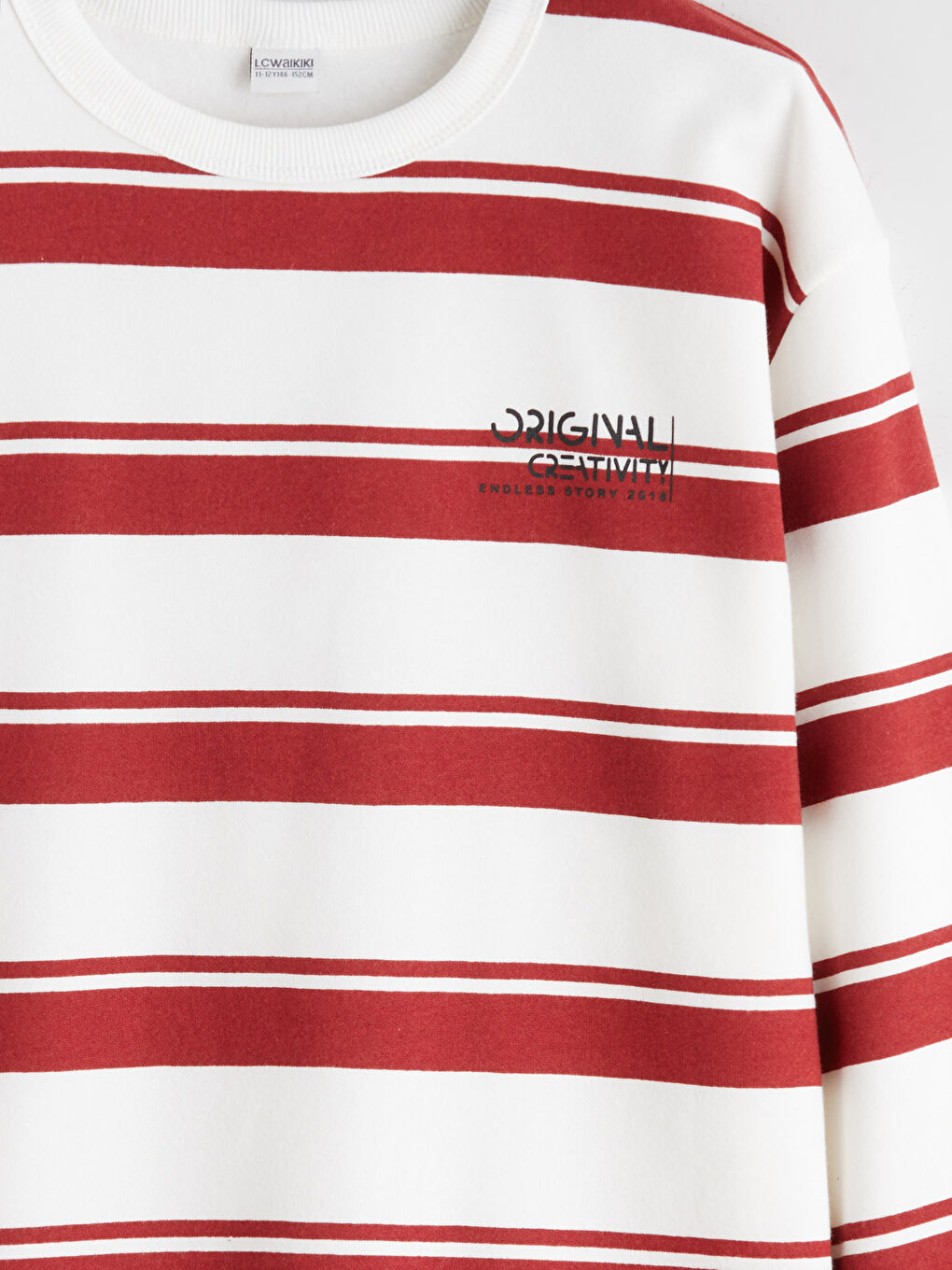 LCW Kids Burgundy Striped Crew Neck Sweatshirt