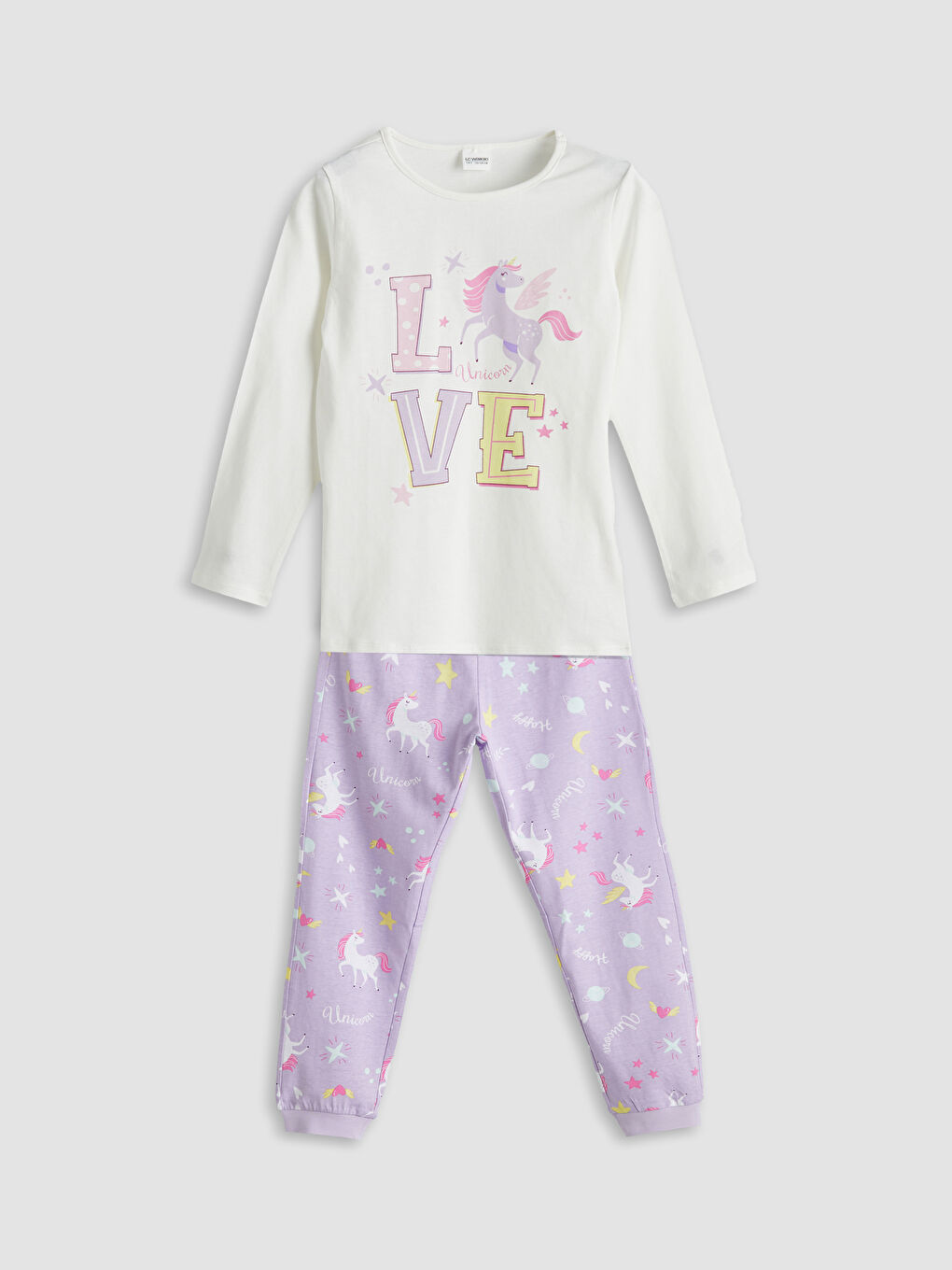 LCW Kids Cream Crew Neck Girl’s Pajama Set