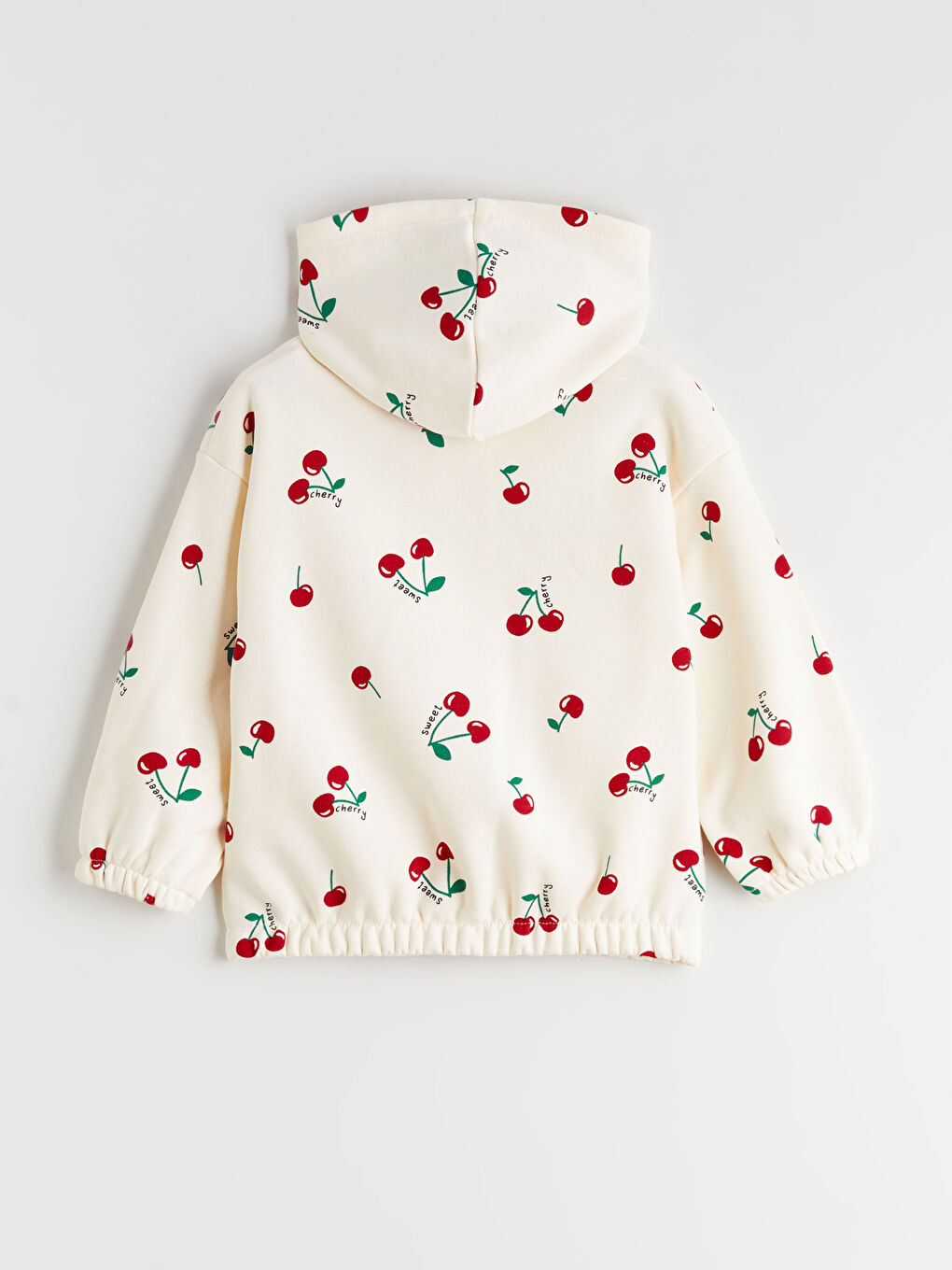 LCW Kids Cream Hooded Printed Girls Zippered Sweatshirt