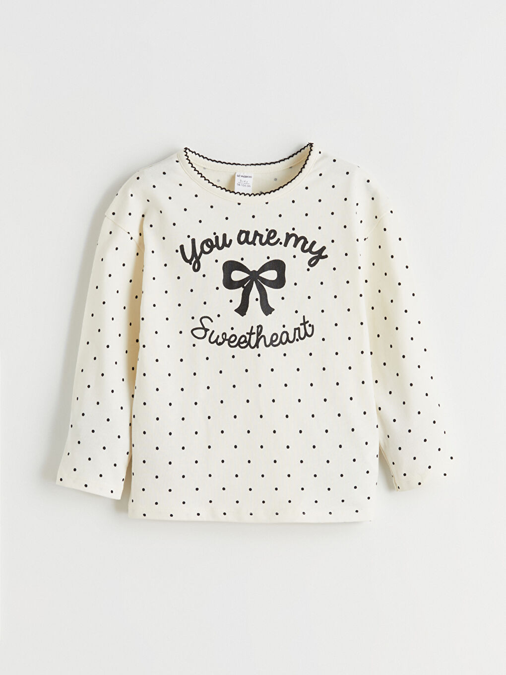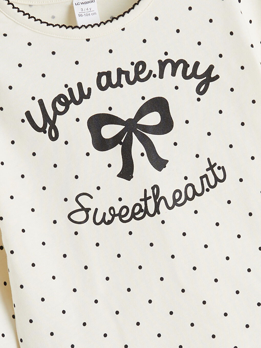 LCW Kids Cream Round Neck Ribbon Printed Girls T-Shirt