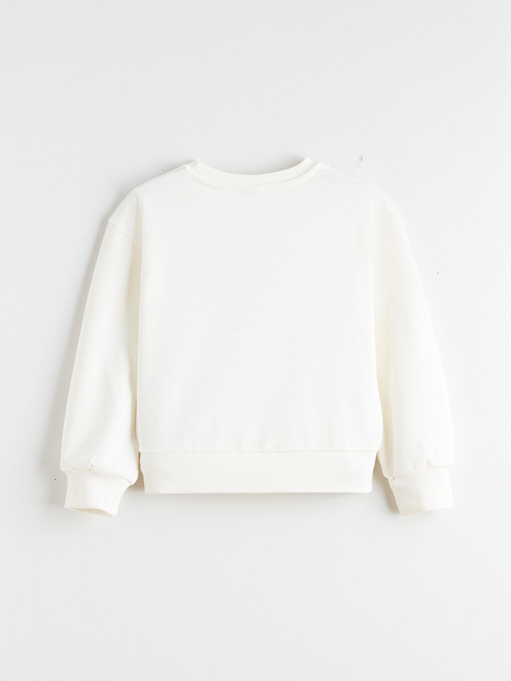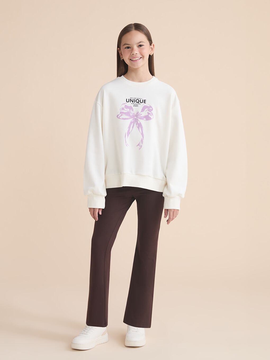 LCW Kids Ecru Crew Neck Bow Print Girls Sweatshirt