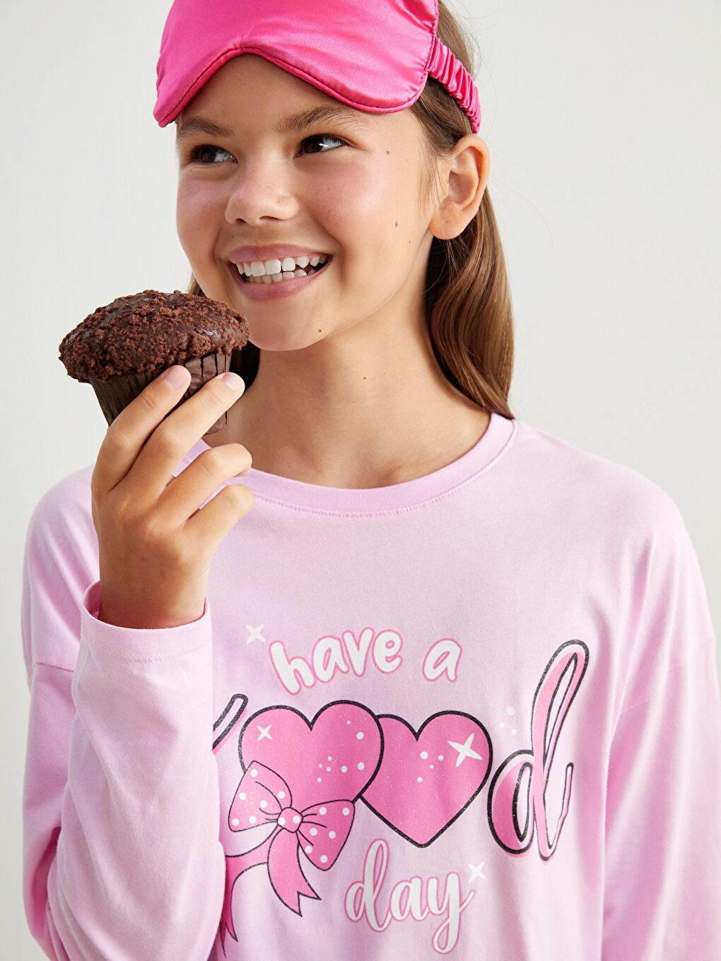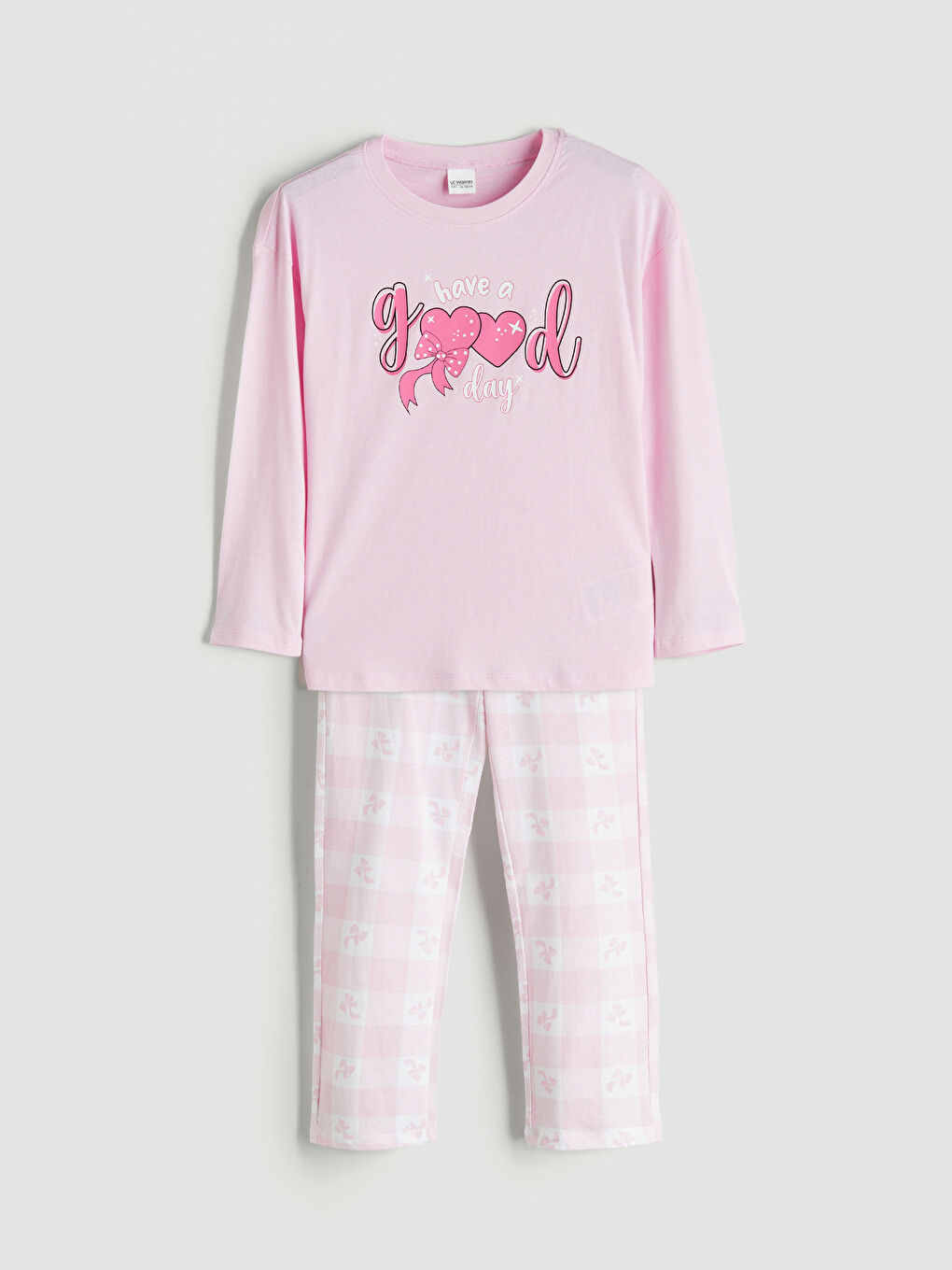 LCW Kids Pink Crew Neck Girls Pajama Set