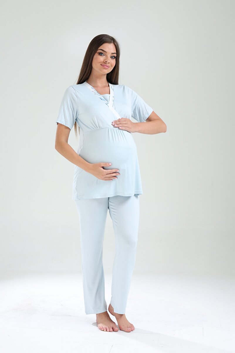 LOHOUSE Women's Blue Cross-Patterned Maternity Pajama Set