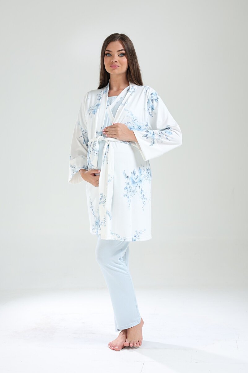 Experience comfort and style with the LOHOUSE Women’s Blue Cross-Patterned Maternity Pajama Set, designed for expecting mothers. This three-piece pajama set includes a cozy robe, perfect for lounging at home or welcoming your little one. Crafted from soft, breathable fabrics, it ensures a gentle touch against your skin while providing the flexibility you need during your pregnancy. The charming cross-pattern adds a touch of elegance, making it a delightful addition to your maternity wardrobe.