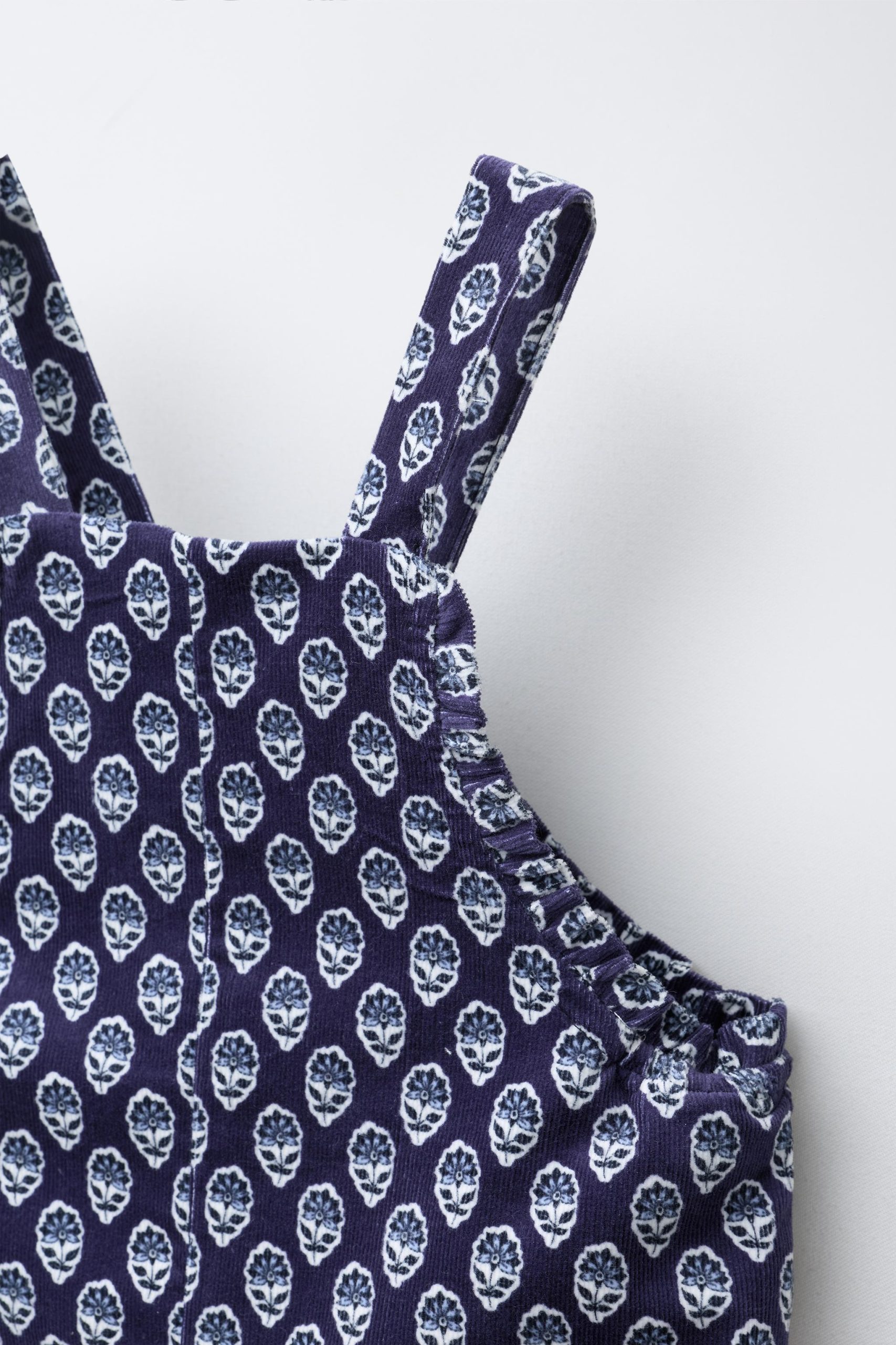 Dress your little one in these charming long corduroy dungarees, designed with a straight neckline and adjustable straps for a perfect fit. The delightful floral print and playful ruffle appliqués add a touch of whimsy, making these dungarees a stylish choice for any adventure. Perfect for playdates or family outings, they combine comfort and style effortlessly, ensuring your child looks as adorable as they feel.