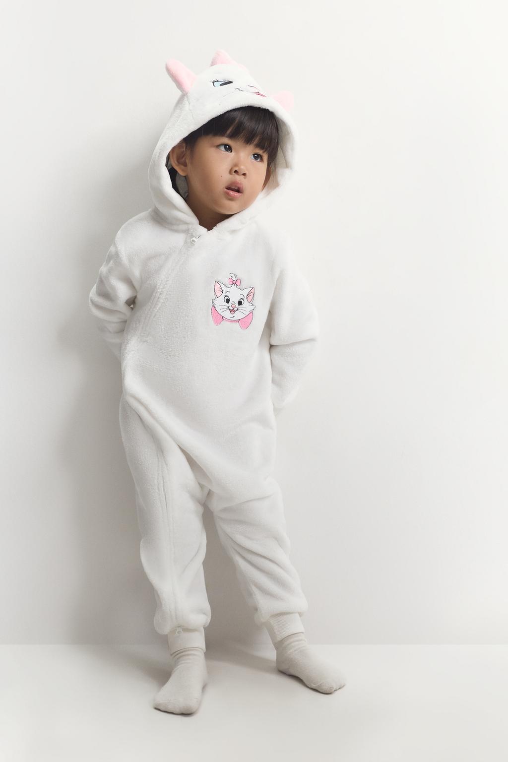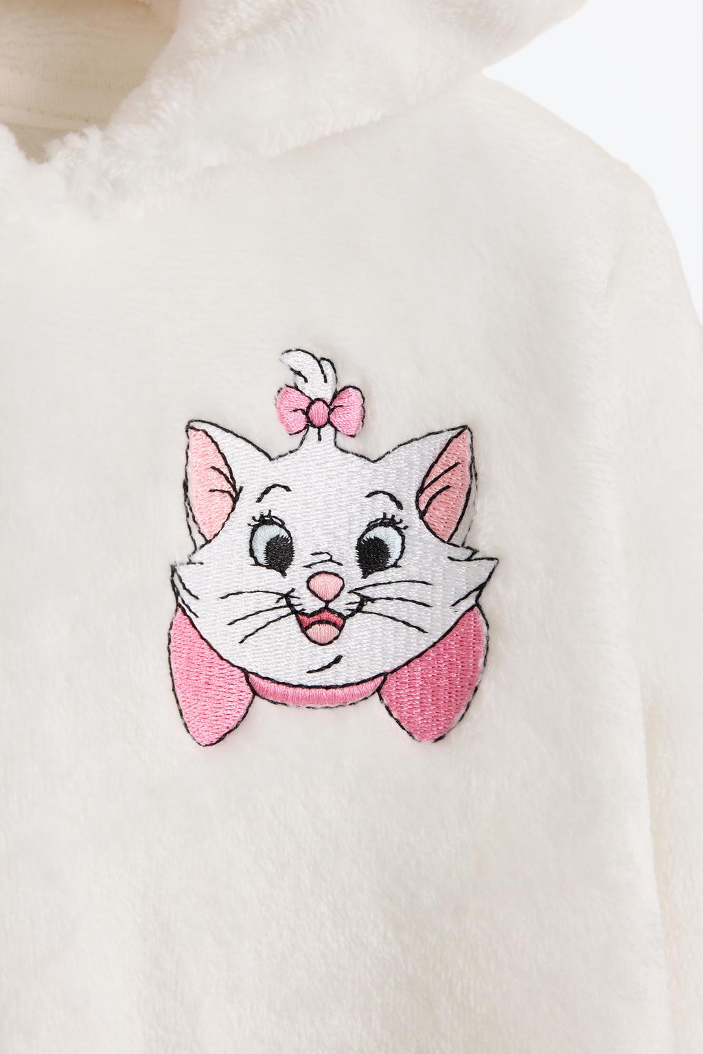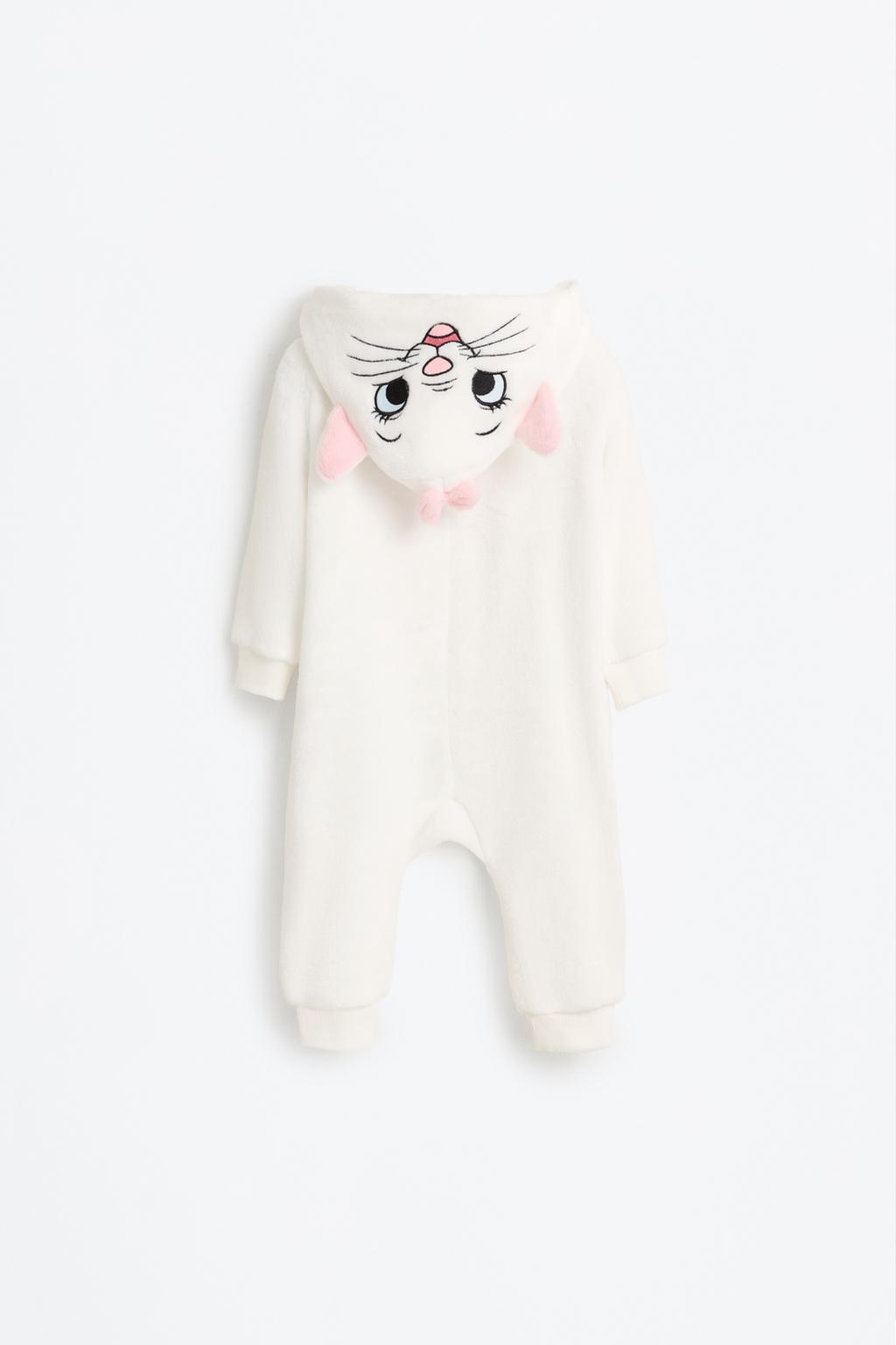 Dress your little one in comfort and style with this adorable Marie The Aristocats ©Disney plush romper. Featuring long sleeves and a cozy hood, this romper is perfect for keeping your child warm during playtime. The charming embroidered and appliquéd details add a delightful touch, while the convenient front metal zipper ensures easy dressing. Ideal for both lounging at home and adventurous outings, this romper is a must-have for any Disney fan’s wardrobe.