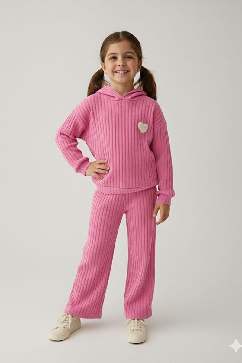 Minigimin Cicileri Heart-Embroidered Ribbed Girls’ Seasonal Set – Pink