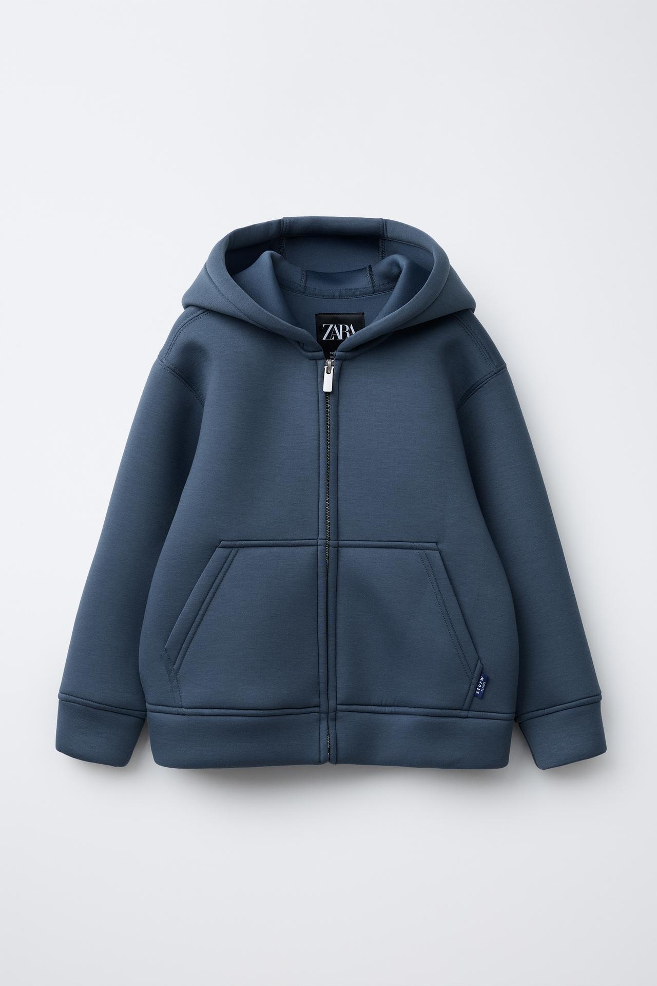 This stylish neoprene-effect jacket is perfect for your little adventurer, featuring a cozy hood and long sleeves to keep them warm on chilly days. With a convenient zip-up front and playful patch pockets, it’s designed for both comfort and fun. The charming label appliqué adds a touch of personality, making this jacket a must-have for trendy kids who love to express themselves!