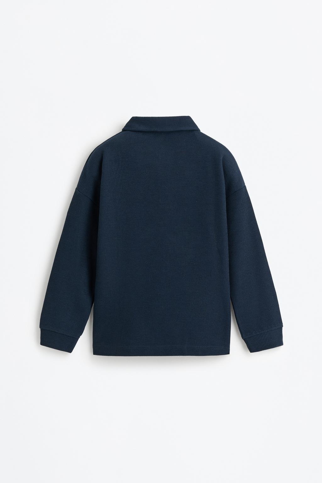 This long-sleeved polo neck sweatshirt is crafted from soft, brushed cotton rib fabric, ensuring ultimate comfort and flexibility for your little ones. Perfect for layering during cooler days, it combines style with practicality, making it an essential addition to any child’s wardrobe.