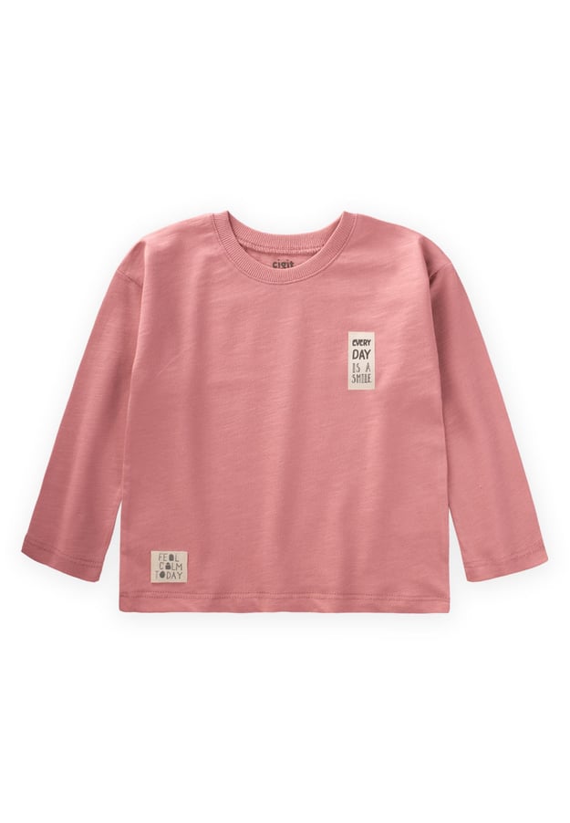 Seasonal T-Shirt with Label Details for Ages 2-10 in Light Pink