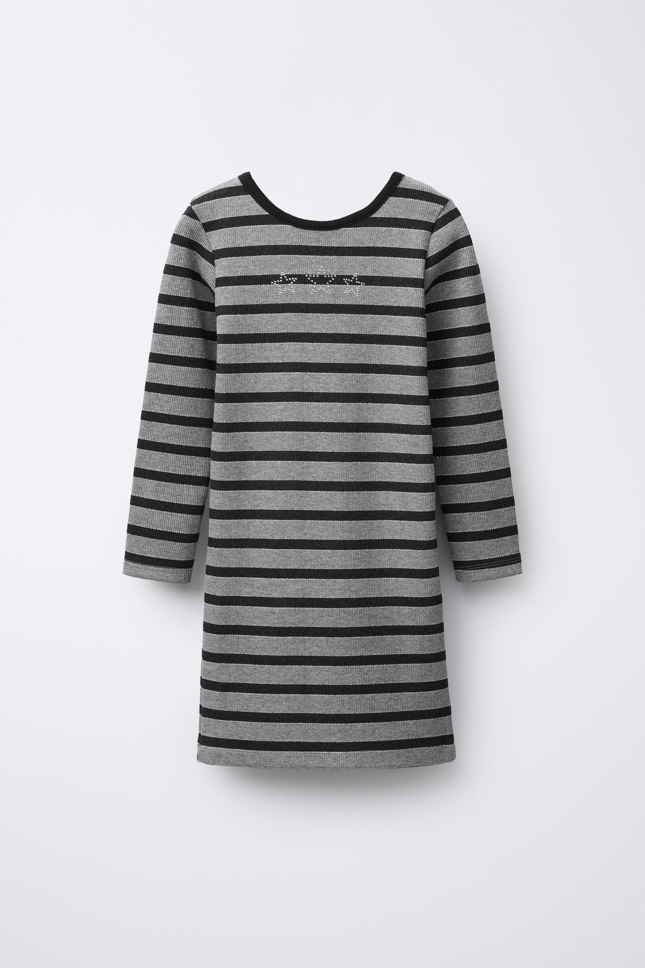 This charming dress features a round neck and long sleeves, perfect for keeping little ones comfortable and stylish. The standout star-shaped stud appliqué on the chest adds a delightful touch, while the shiny striped print brings a playful sparkle to any occasion. Ideal for playdates or festive gatherings, this dress is a must-have for your child’s wardrobe, combining fun and fashion effortlessly.