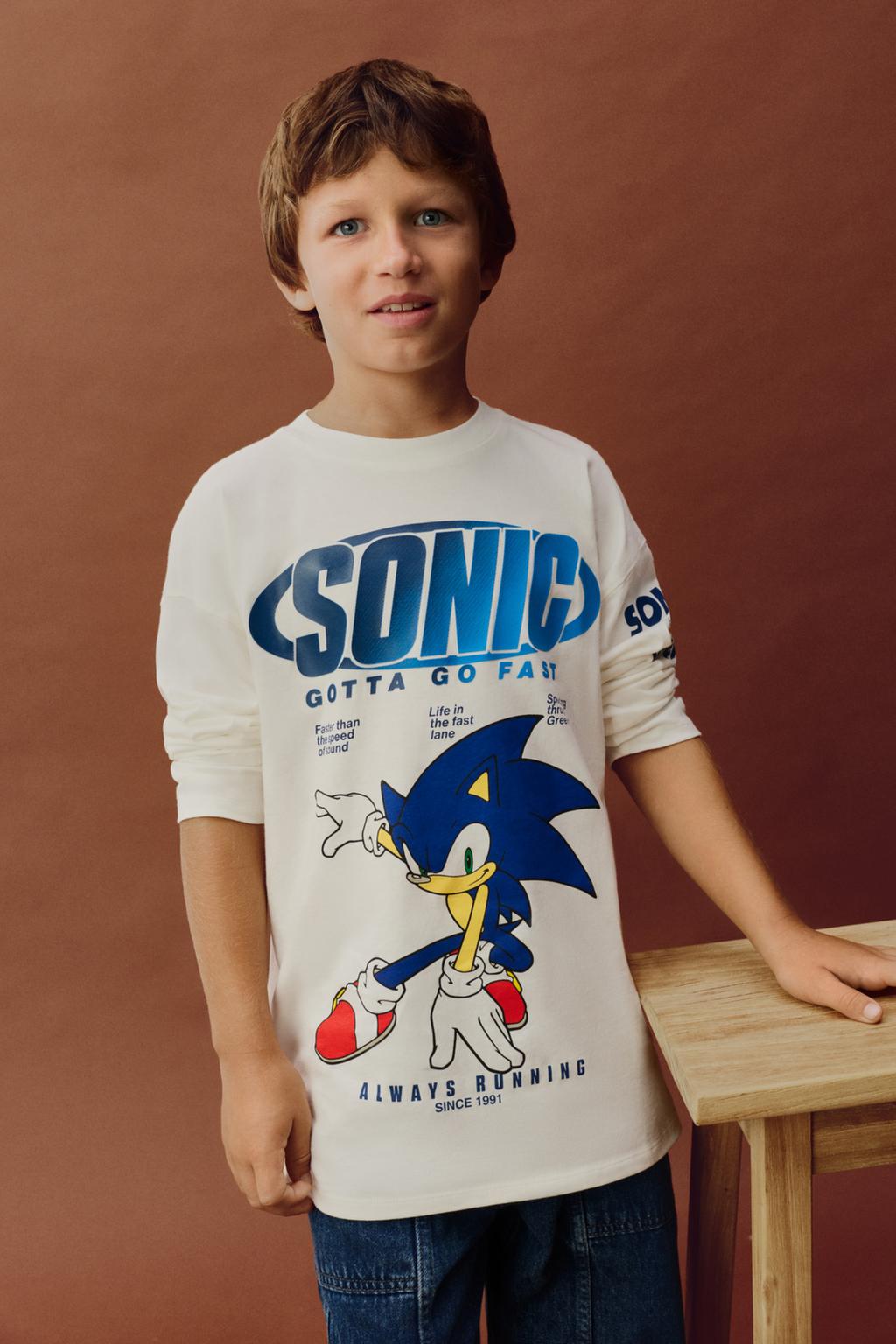 Get your little one ready for adventure with this stylish long sleeve t-shirt featuring vibrant SONIC™ | SEGA graphics on the front. Made from 100% cotton, this comfortable and breathable tee is perfect for playtime or casual outings. With unique prints on the sleeves, it adds a fun touch to any child’s wardrobe, ensuring they’ll stand out while staying cozy.