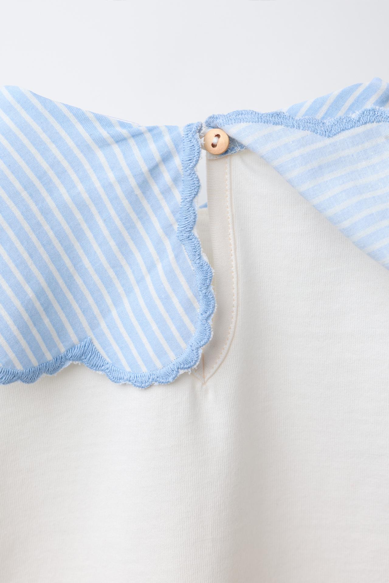 This charming striped T-shirt features a delightful Peter Pan collar and long sleeves with elasticated cuffs, ensuring a comfortable fit for your little one. The teardrop button fastening at the back adds a touch of elegance, while the adorable bow appliqué on the front brings a playful flair to any outfit. Perfect for casual playdates or family outings, this T-shirt is a versatile addition to your child’s wardrobe.