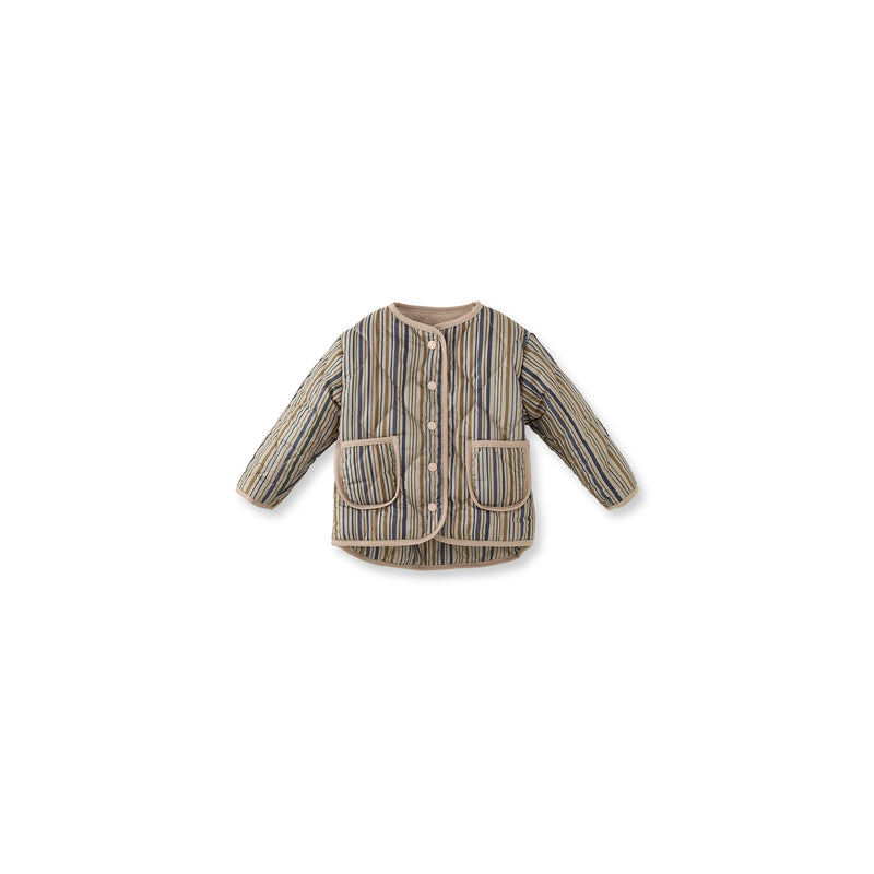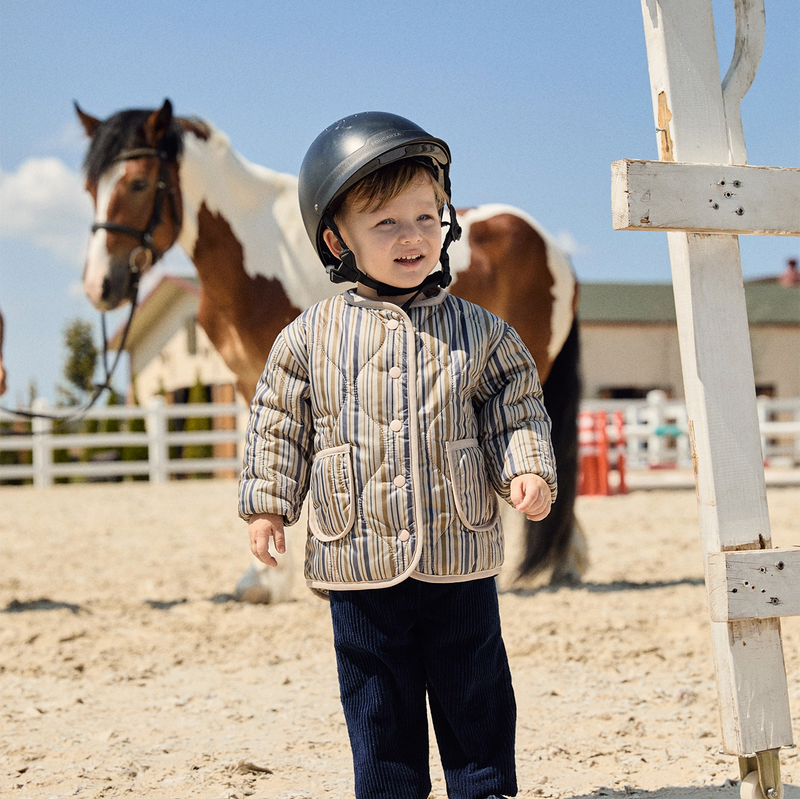 تتميز هذه السترة المبطنة المخططة الجذابة بياقة كلاسيكية وأكمام طويلة، مما يجعلها مثالية لراحة طفلك وأناقته. بفضل أزرار الإغلاق الكبسية، والجيوب الأمامية، والتفاصيل المتباينة، فهي مصممة لتجمع بين العملية والأناقة. مصنوعة من مواد ناعمة ومتينة، تُعد هذه السترة إضافة رائعة لخزانة ملابس أي طفل، مما يضمن دفئه أثناء مغامراته الخارجية. سهلة العناية، ما عليك سوى مسحها وتنظيفها بدون مبيضات، وتجنب التجفيف في المجفف للحفاظ على مظهرها الرائع.