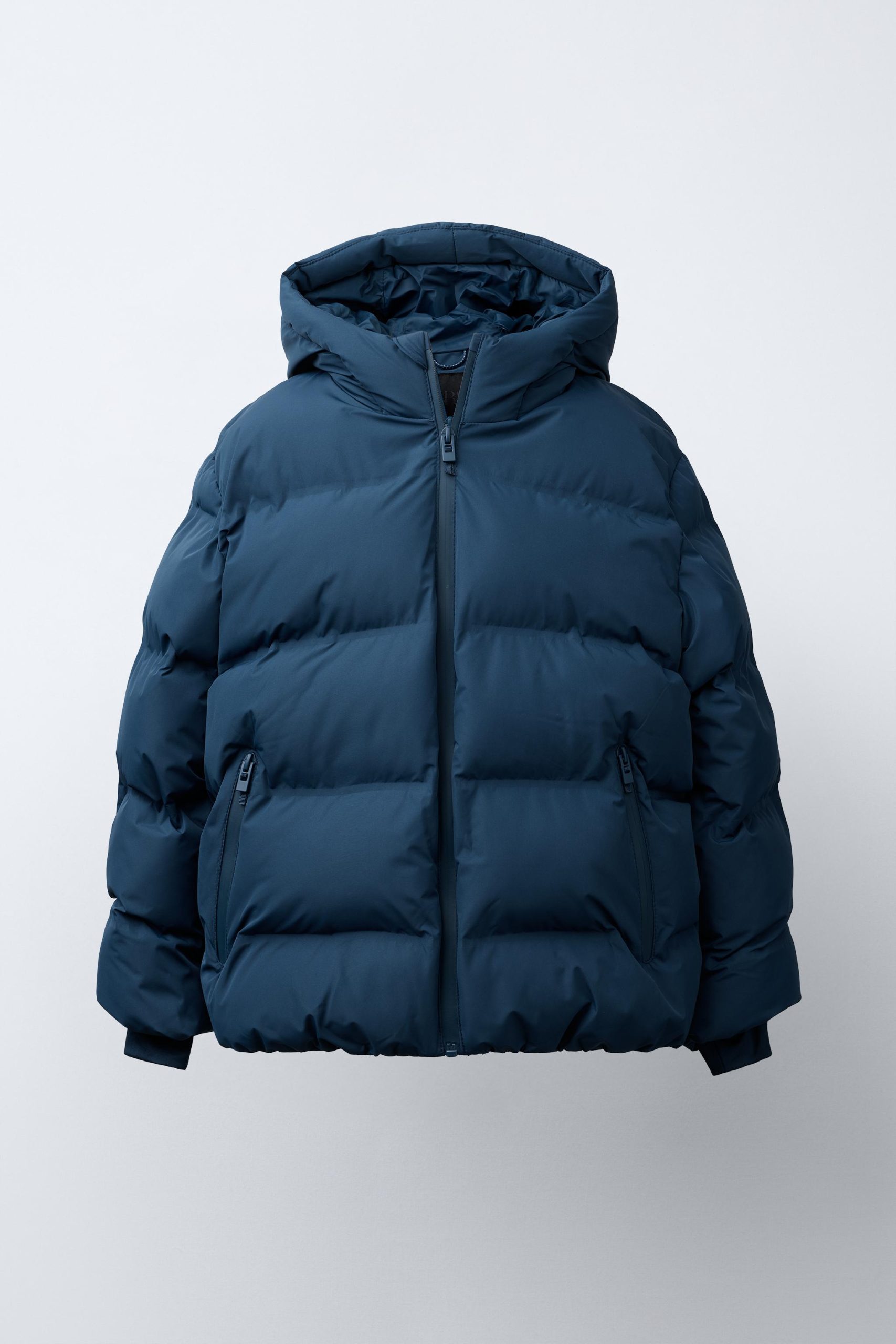 Keep your little ones warm and dry with our stylish water-repellent quilted coat. Designed with a cozy high collar, a comfortable hoodie, and long sleeves, this coat is perfect for outdoor adventures. It features a secure heat-sealed zip-up front and convenient front pockets with zip fastening to keep their treasures safe. The playful adhesive label appliqué on the sleeve adds a fun touch, making this coat a must-have for any child’s wardrobe.