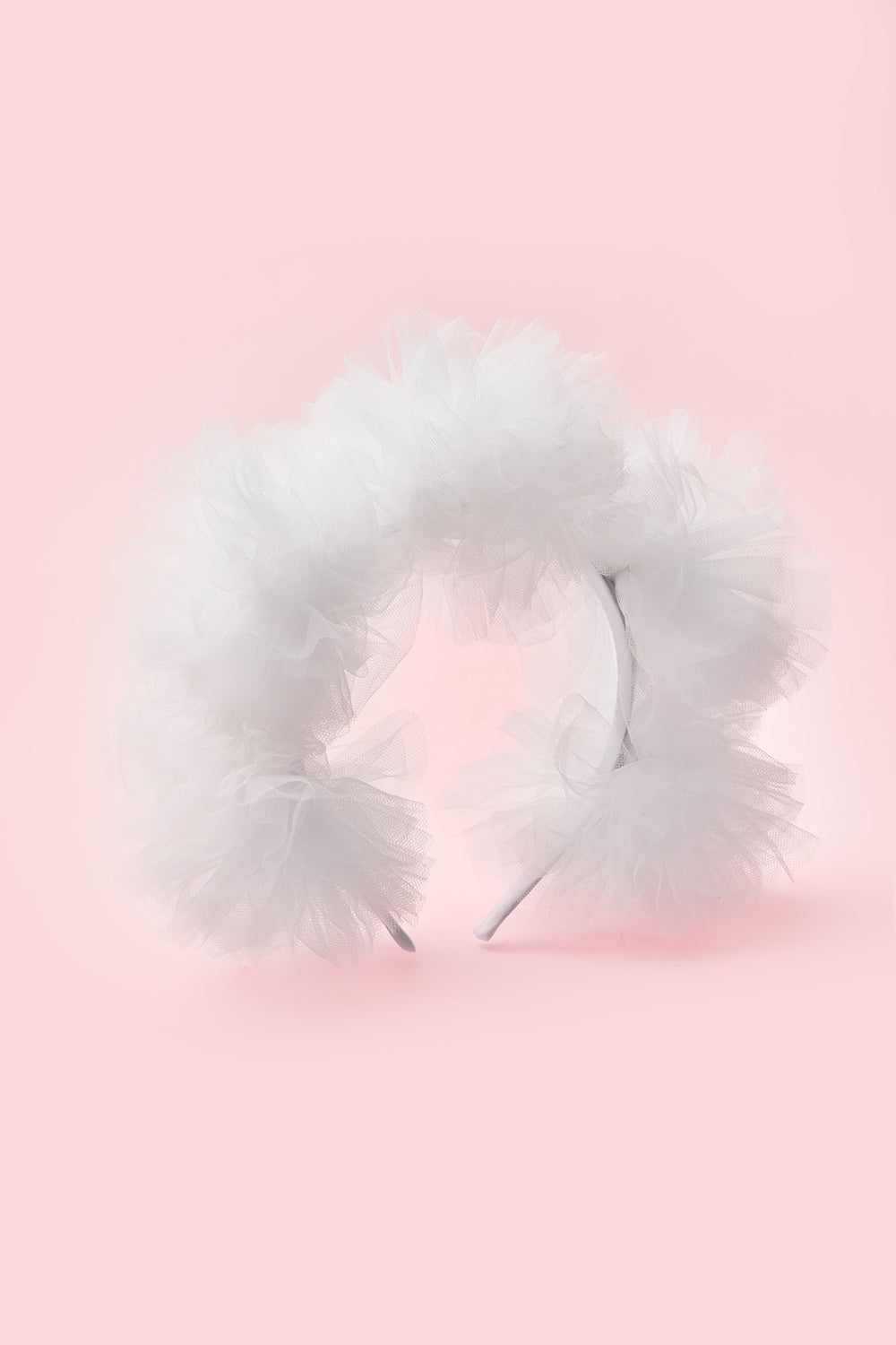 This whimsical white tulle headband adorned with playful pom-poms is the perfect accessory for your little princess. Designed for comfort and style, it adds a touch of magic to any outfit, making her feel special for every occasion. Ideal for parties, playdates, or just a fun day out, this charming headband is a must-have for every young fashionista.