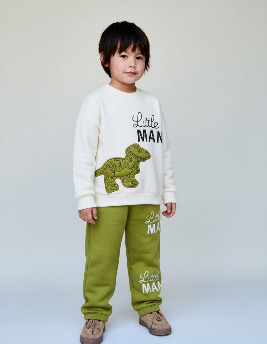 Boys’ Cotton Green Little Man Dinosaur Print Tracksuit – Comfortable Fit