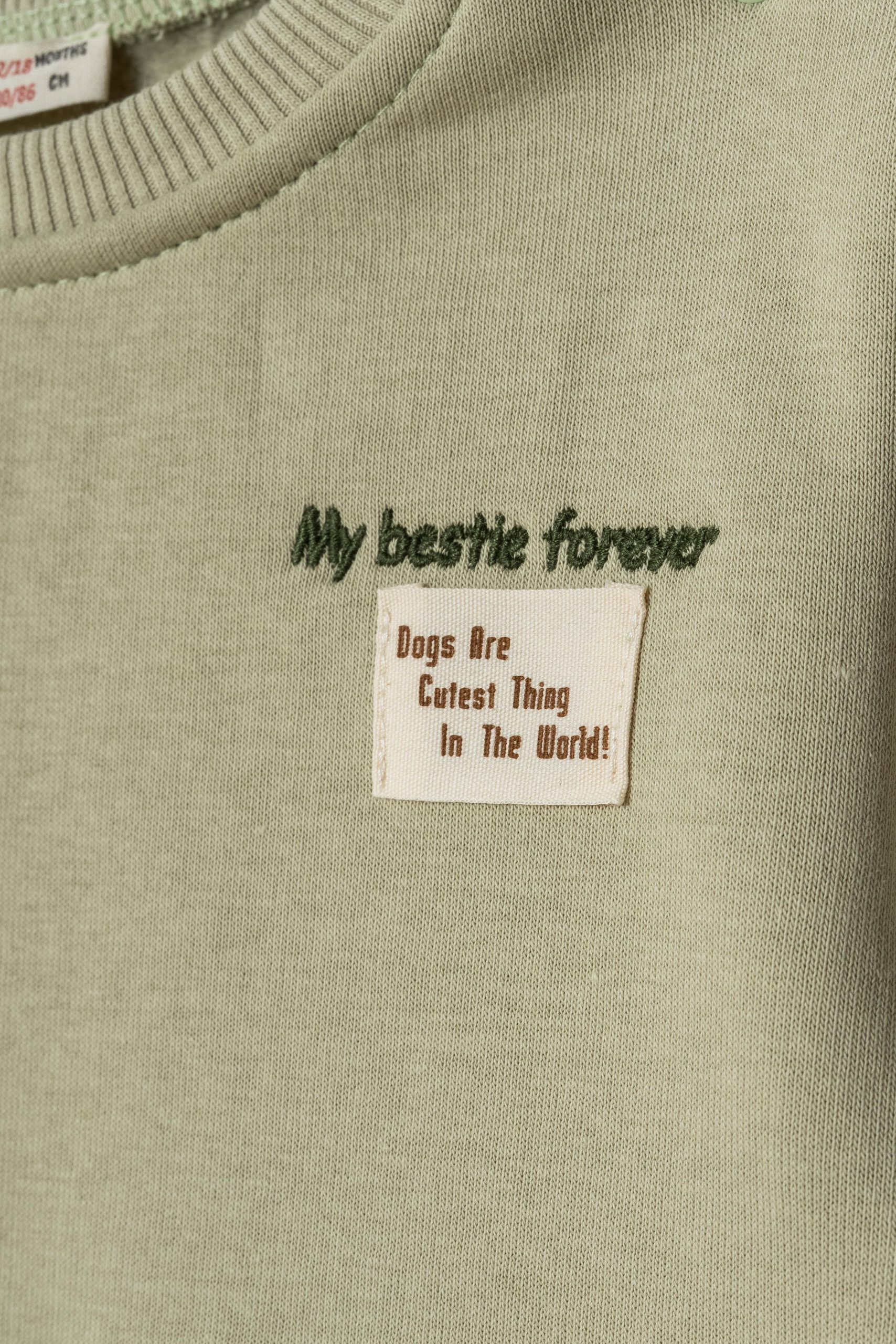 Boys' Cotton Green Sweatshirt and Dog Embroidered Jogger Set