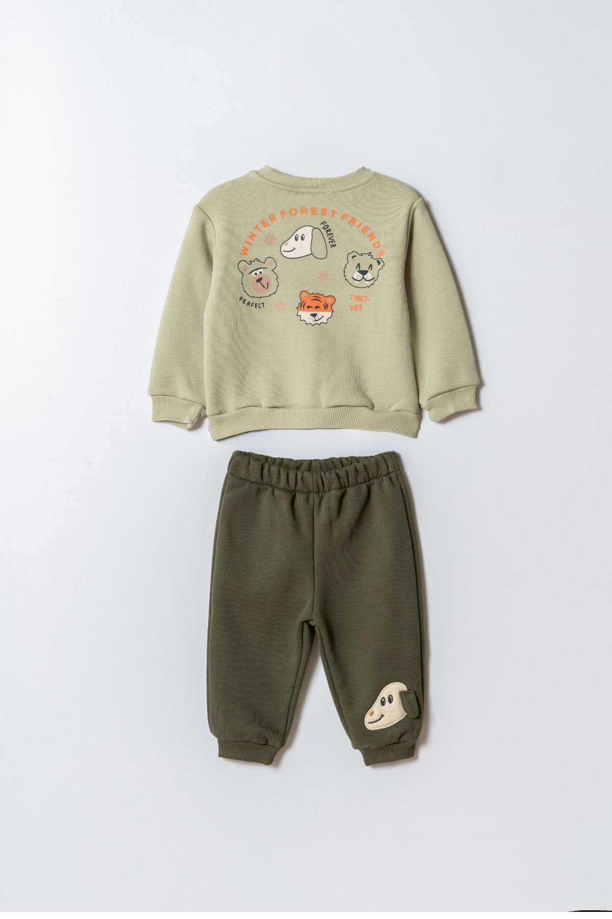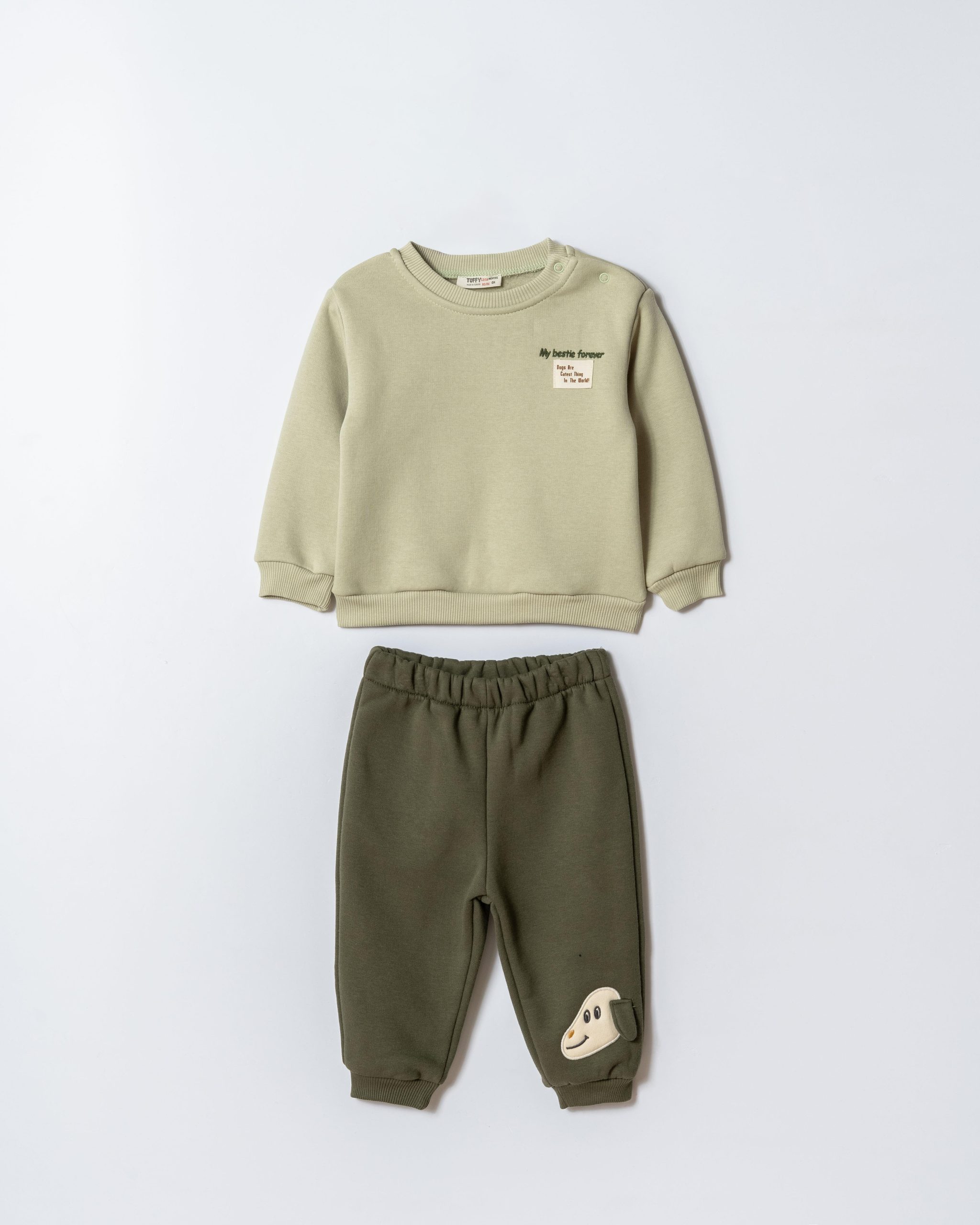 Boys’ Cotton Green Sweatshirt and Dog Embroidered Jogger Set