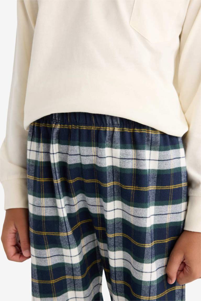 Boys’ Long Sleeve Pajama Set with Checkered Bottoms