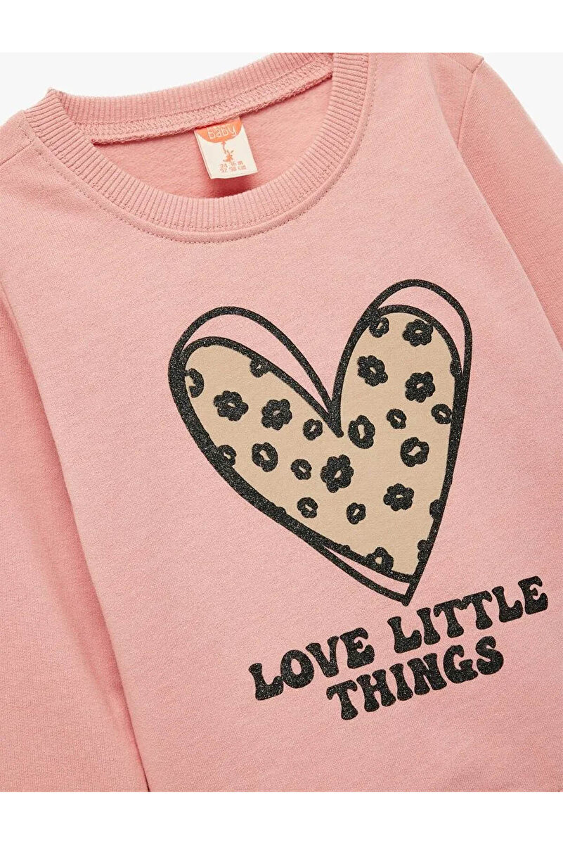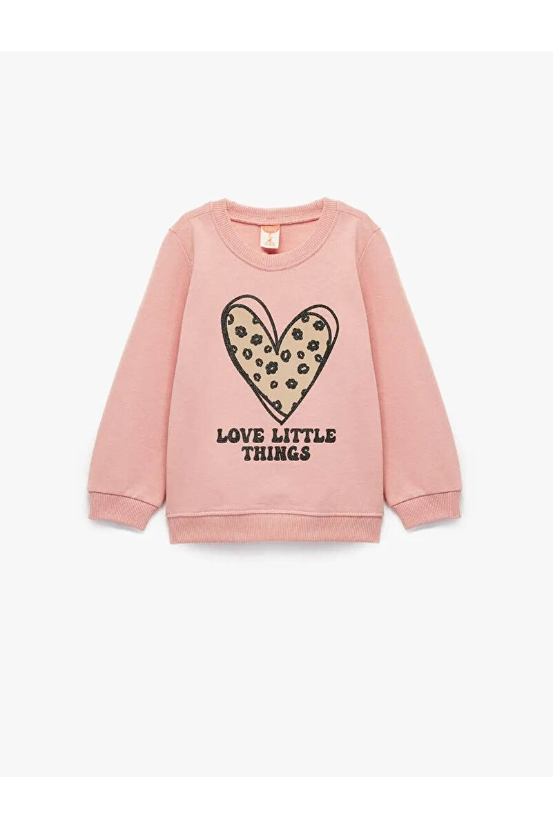 Cotton Long Sleeve Crew Neck Heart Print Pink Baby Girl Sweatshirt