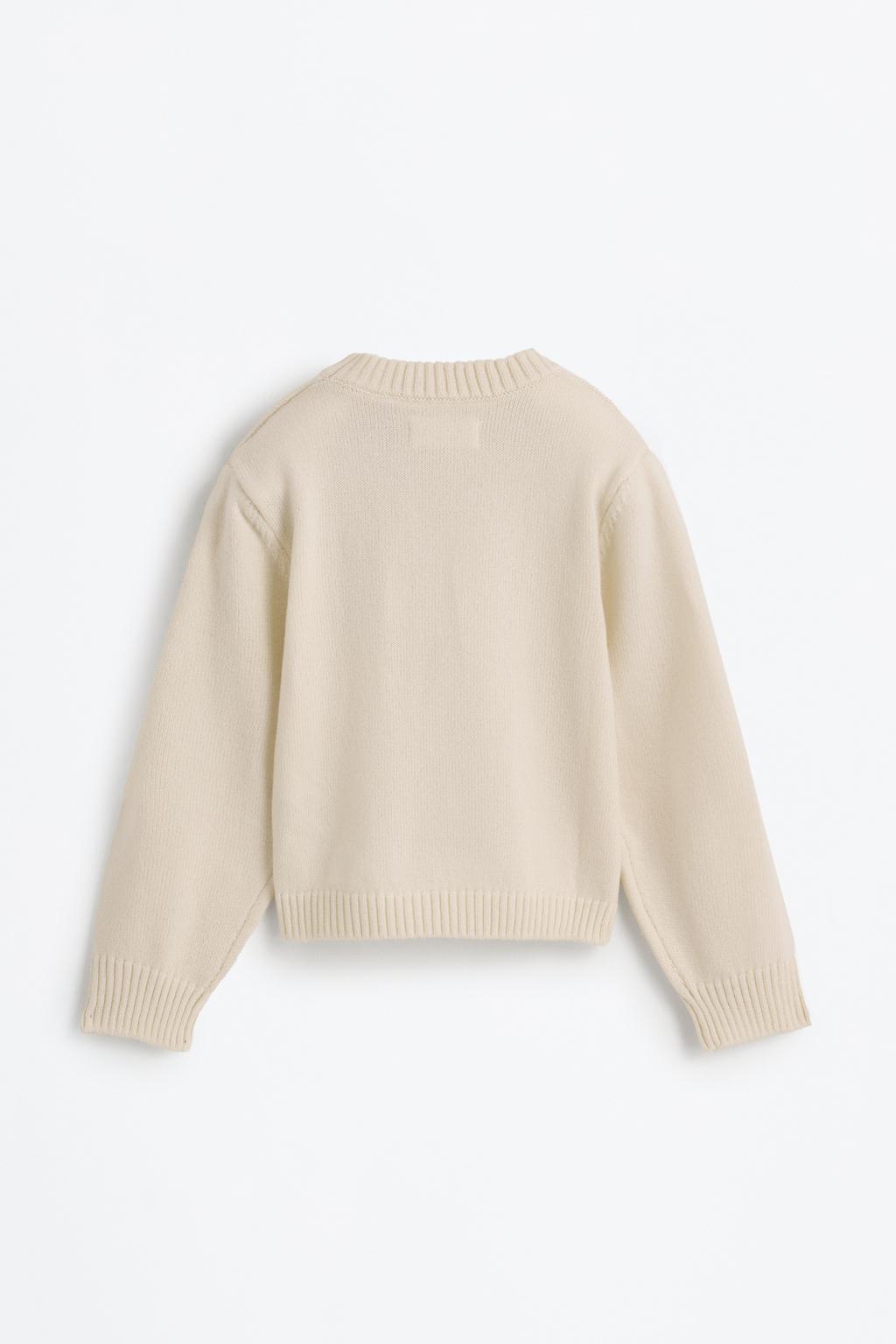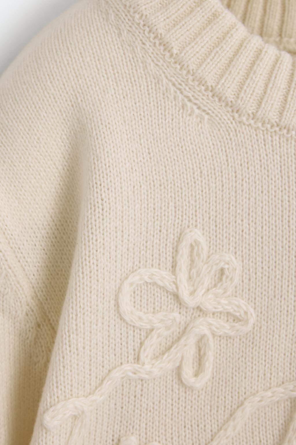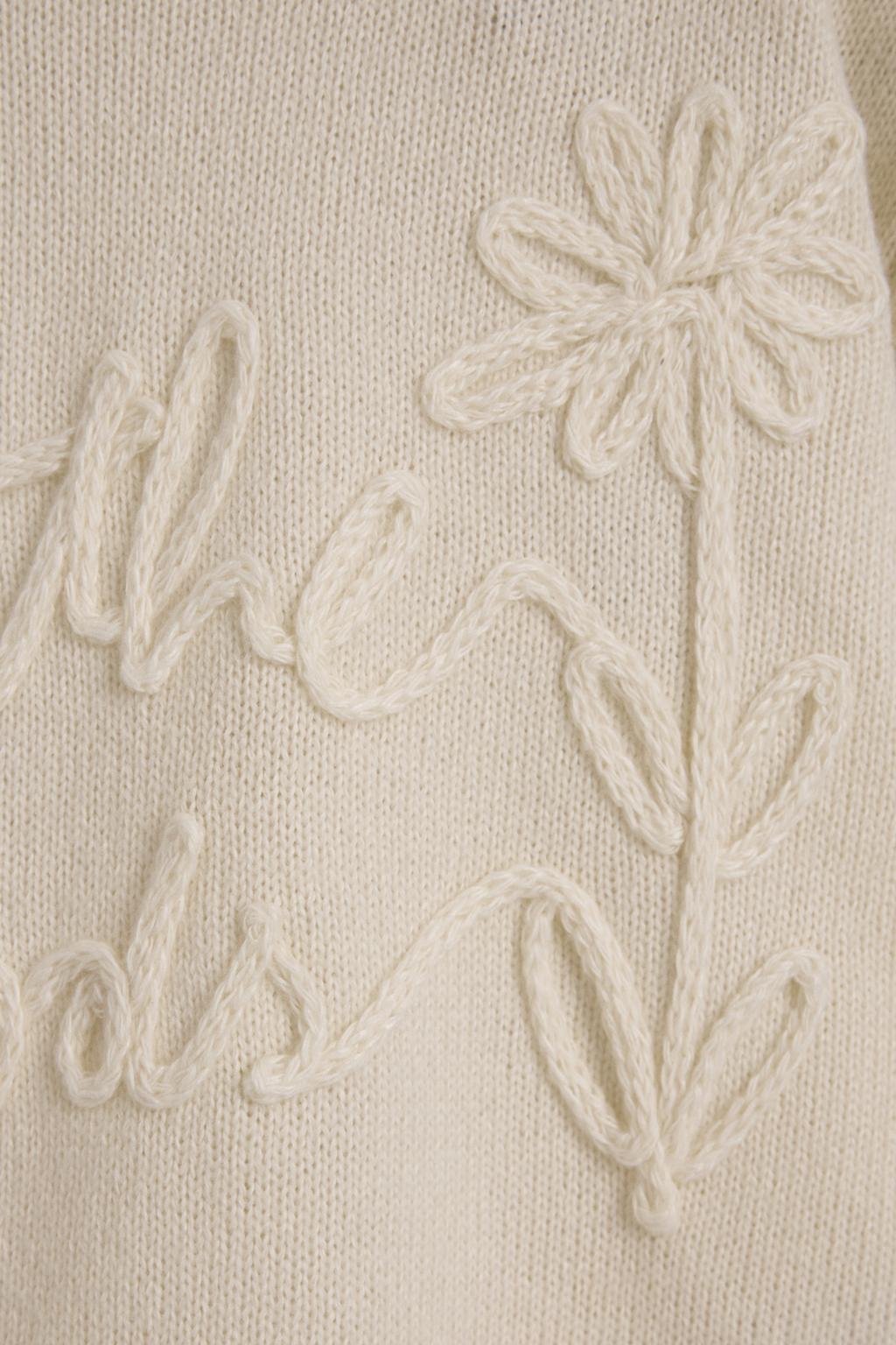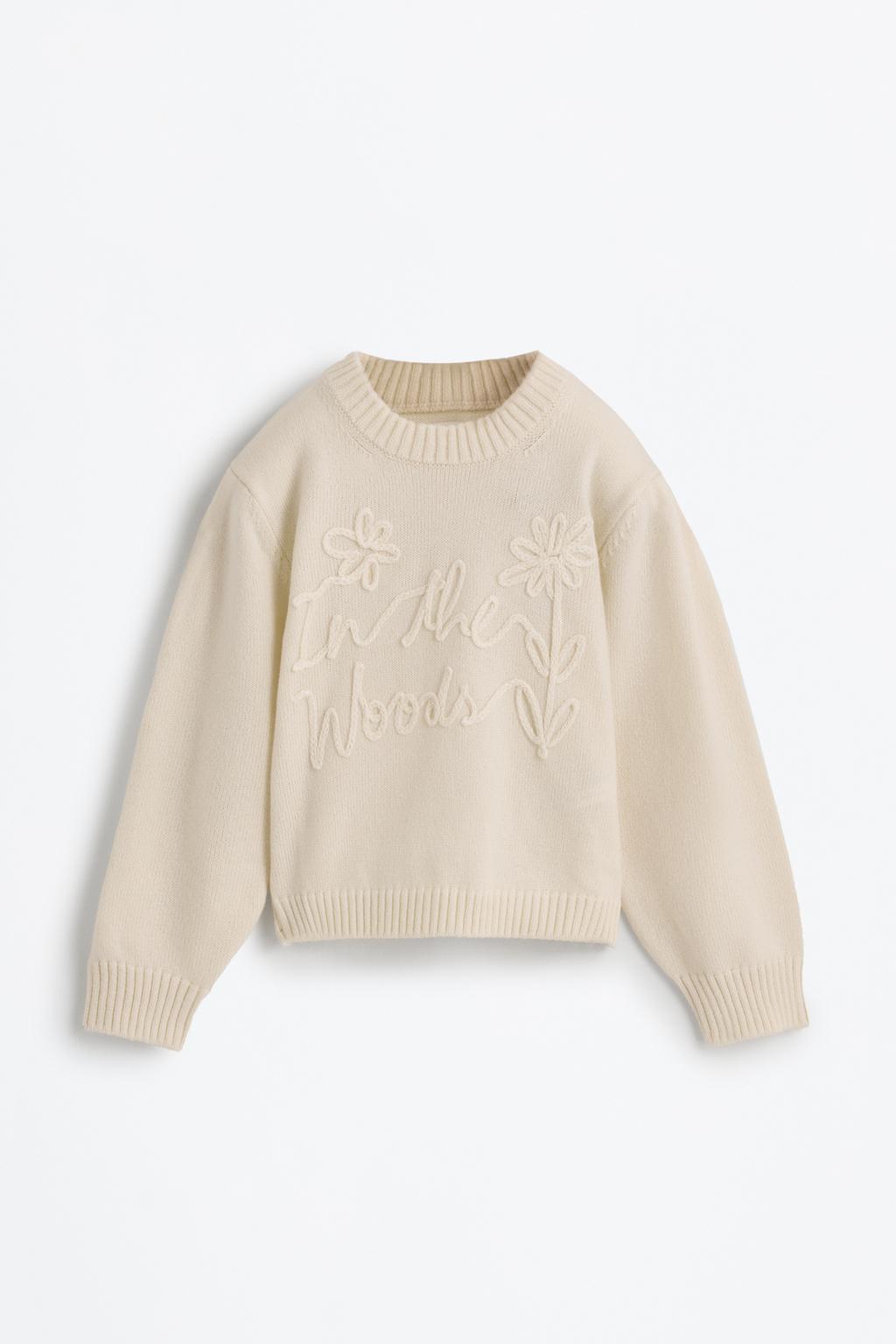 This charming embroidered knit sweater features a classic crew neckline and long sleeves, making it perfect for any casual occasion. Crafted from soft, stretchy knit fabric, the sweater boasts delightful stitched knit appliqués that add a playful touch. With its ribbed edges at the hem and cuffs, this cozy piece is ideal for keeping your little one warm and stylish all season long.