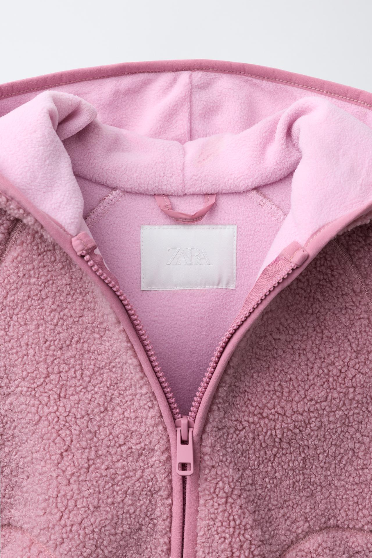 Keep your little one warm and stylish with this adorable faux shearling jacket featuring a cozy hood and long sleeves. The zip-up front ensures easy dressing, while the front pockets add a fun and functional touch. Lined with soft fleece, this jacket is perfect for chilly days, making it a must-have addition to your child’s wardrobe.