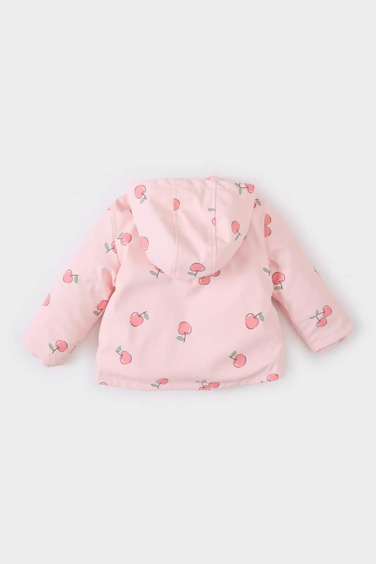 Girls’ Baby Windproof Waterproof Hooded Patterned Snaps Pocket Jacket