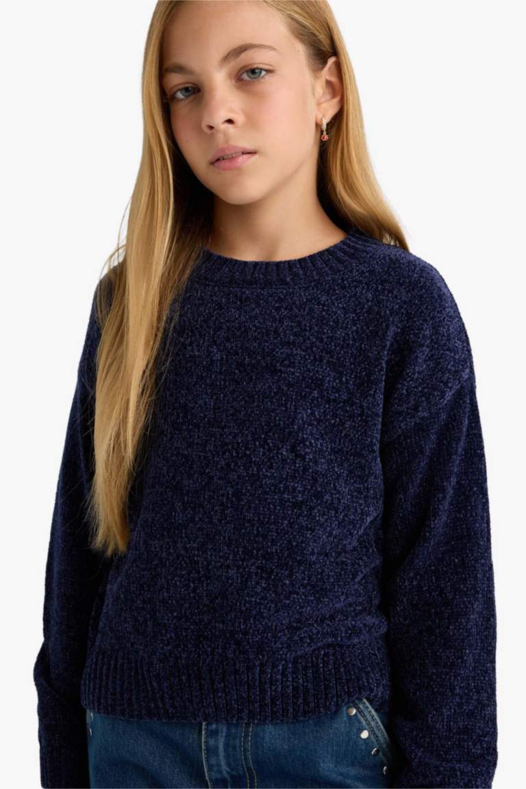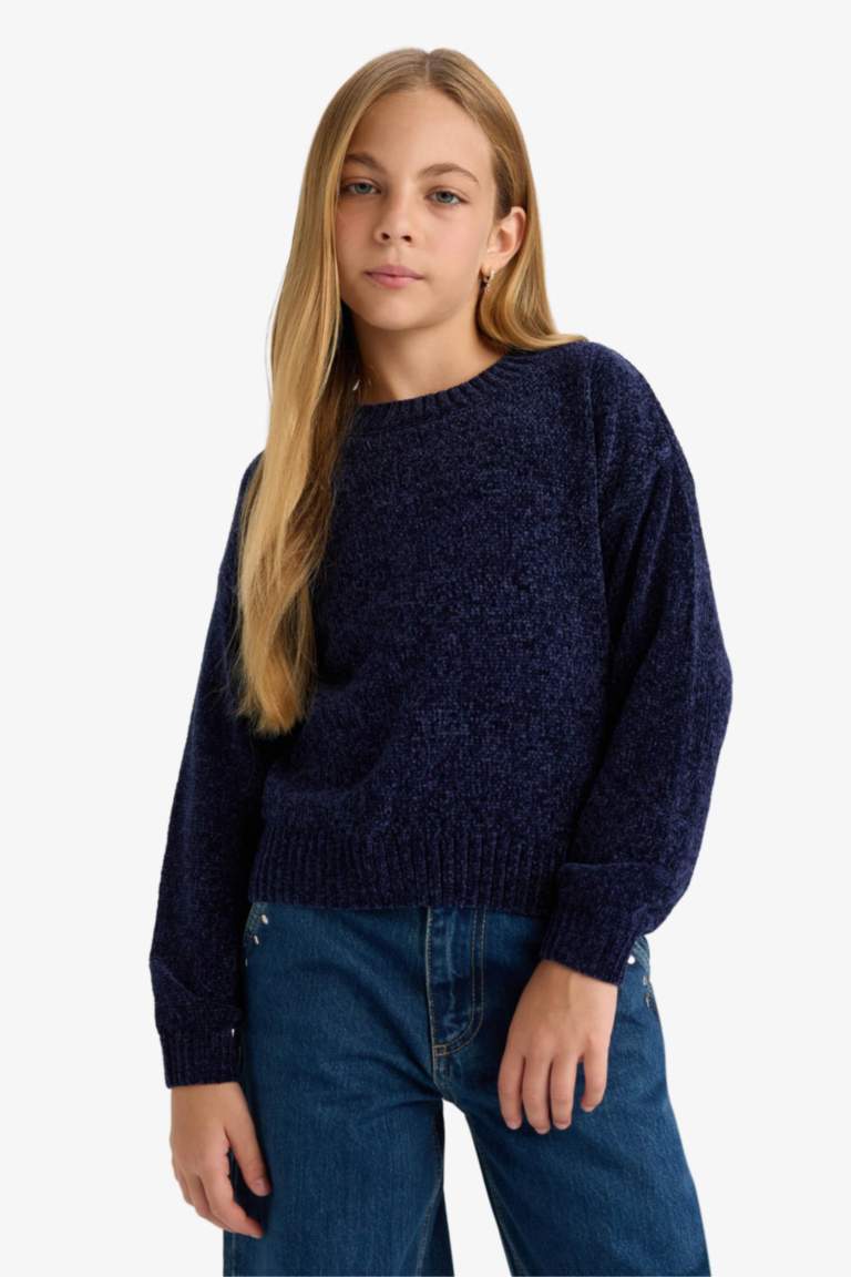 Girls’ Bicycle Neck Chenille Knit Sweater