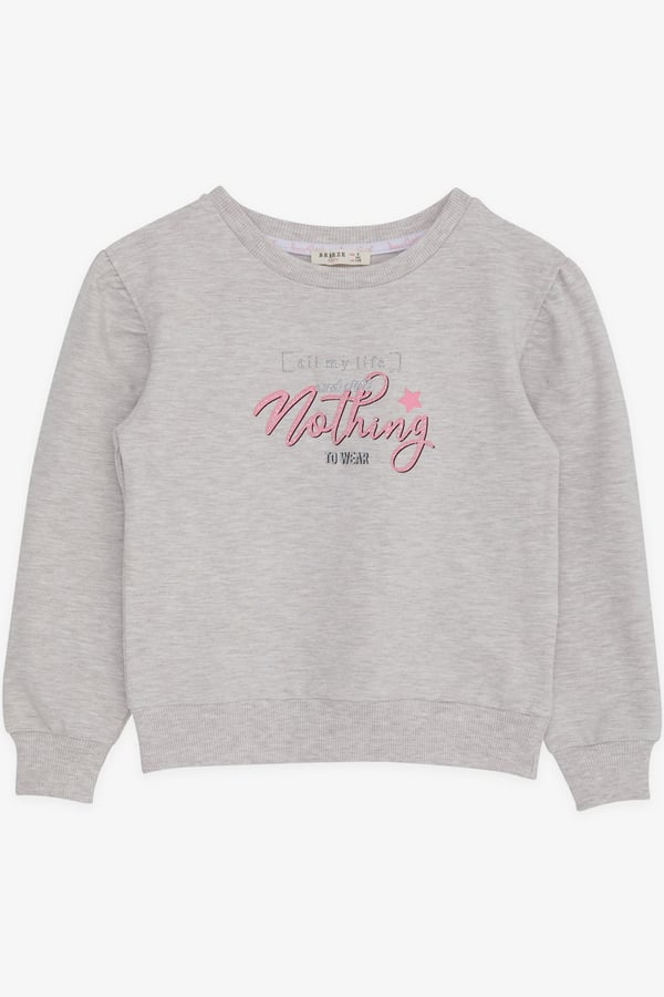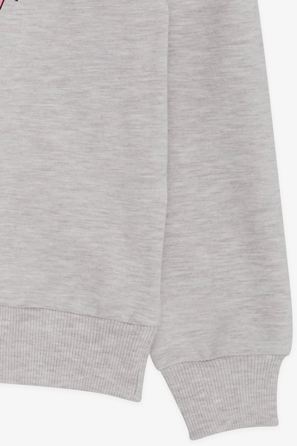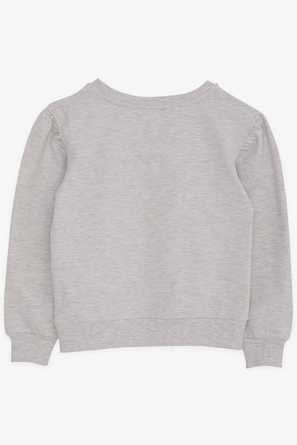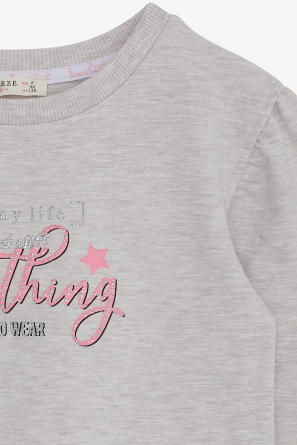 Girls' Sweatshirt with Glitter Print in Beige Melange (Ages 8-14)