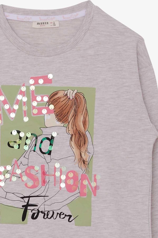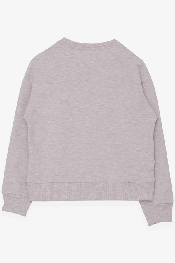 Girls' Sweatshirt with Sequined Print in Beige Melange (Ages 8-14)