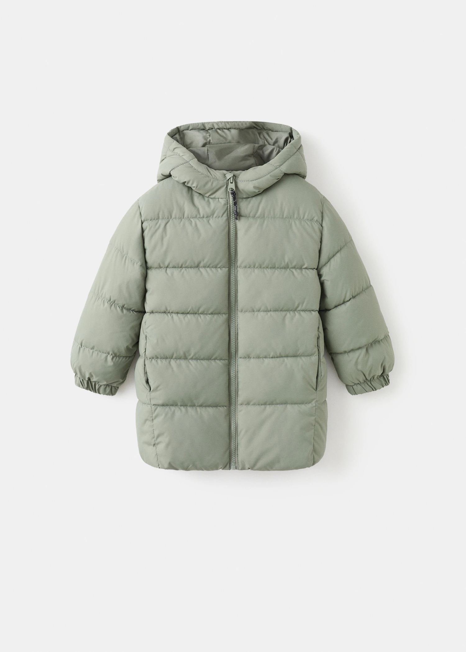 AçıklamaKapitone kumaş. Uzun tasarım. Düz kesim. Kapüşonlu. Uzun kollu. Önden fermuarlı kapama. İki yan cep.