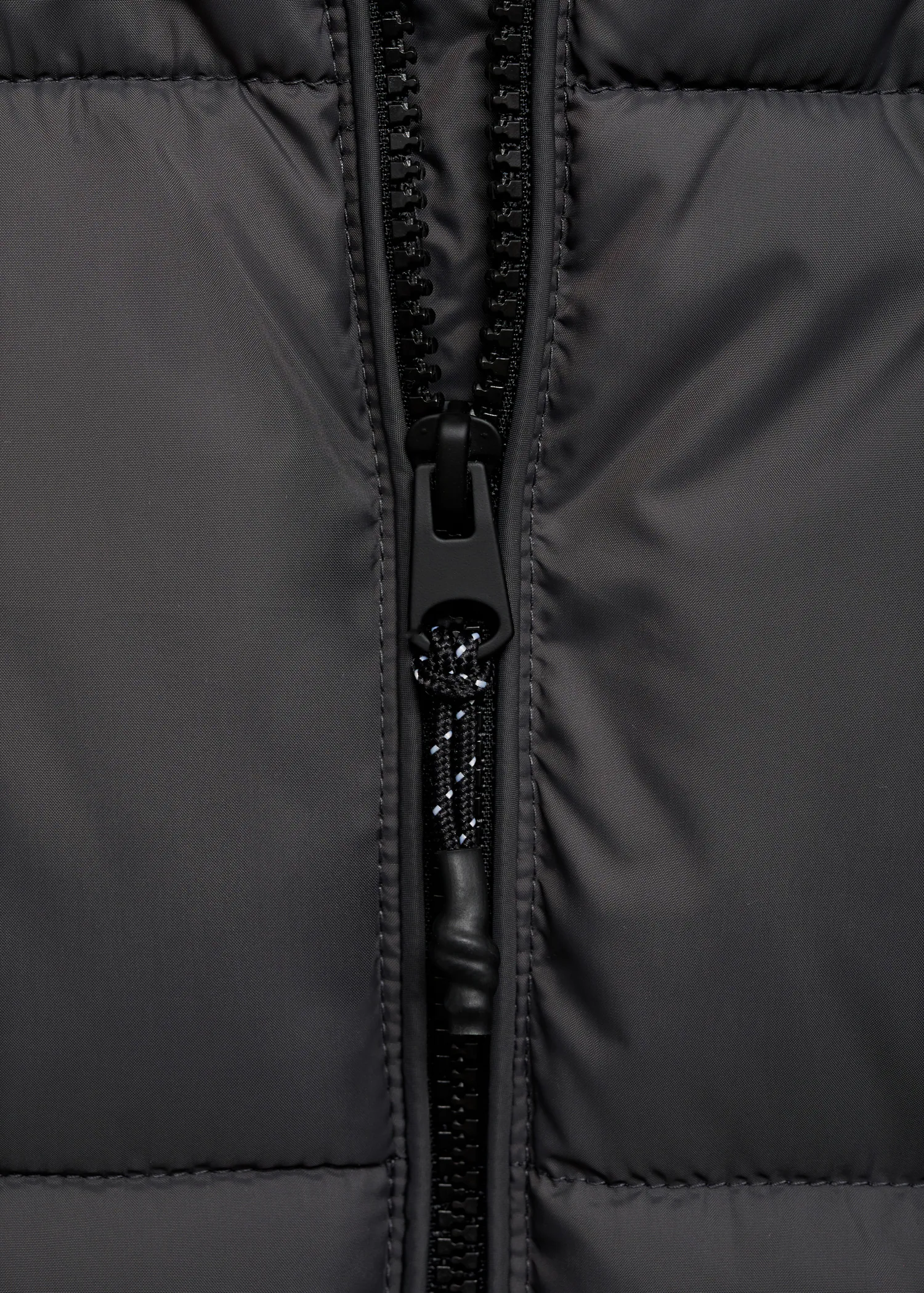 AçıklamaKapitone kumaş. Su geçirmeyen kumaş. Düz kesim. Uzun tasarım. Kapüşonlu. Esnek manşetli uzun kollu. Fermuar kapama. İki yan cep. Koyun yünü astarlı.