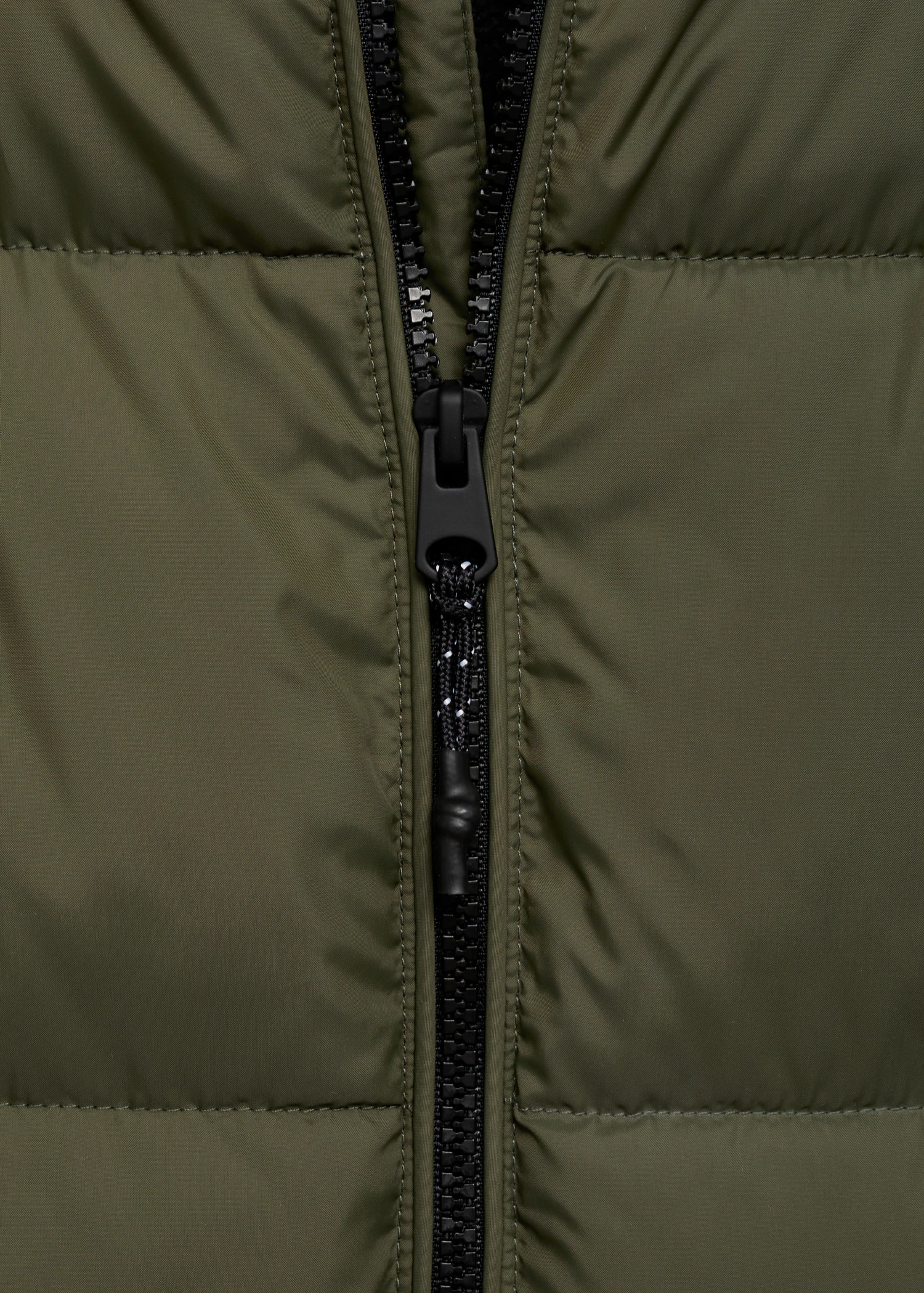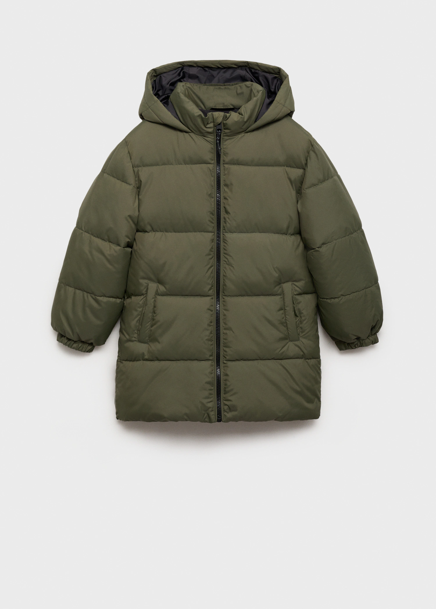 AçıklamaKapitone kumaş. Su geçirmeyen kumaş. Düz kesim. Uzun tasarım. Kapüşonlu. Esnek manşetli uzun kollu. Fermuar kapama. İki yan cep. Koyun yünü astarlı.