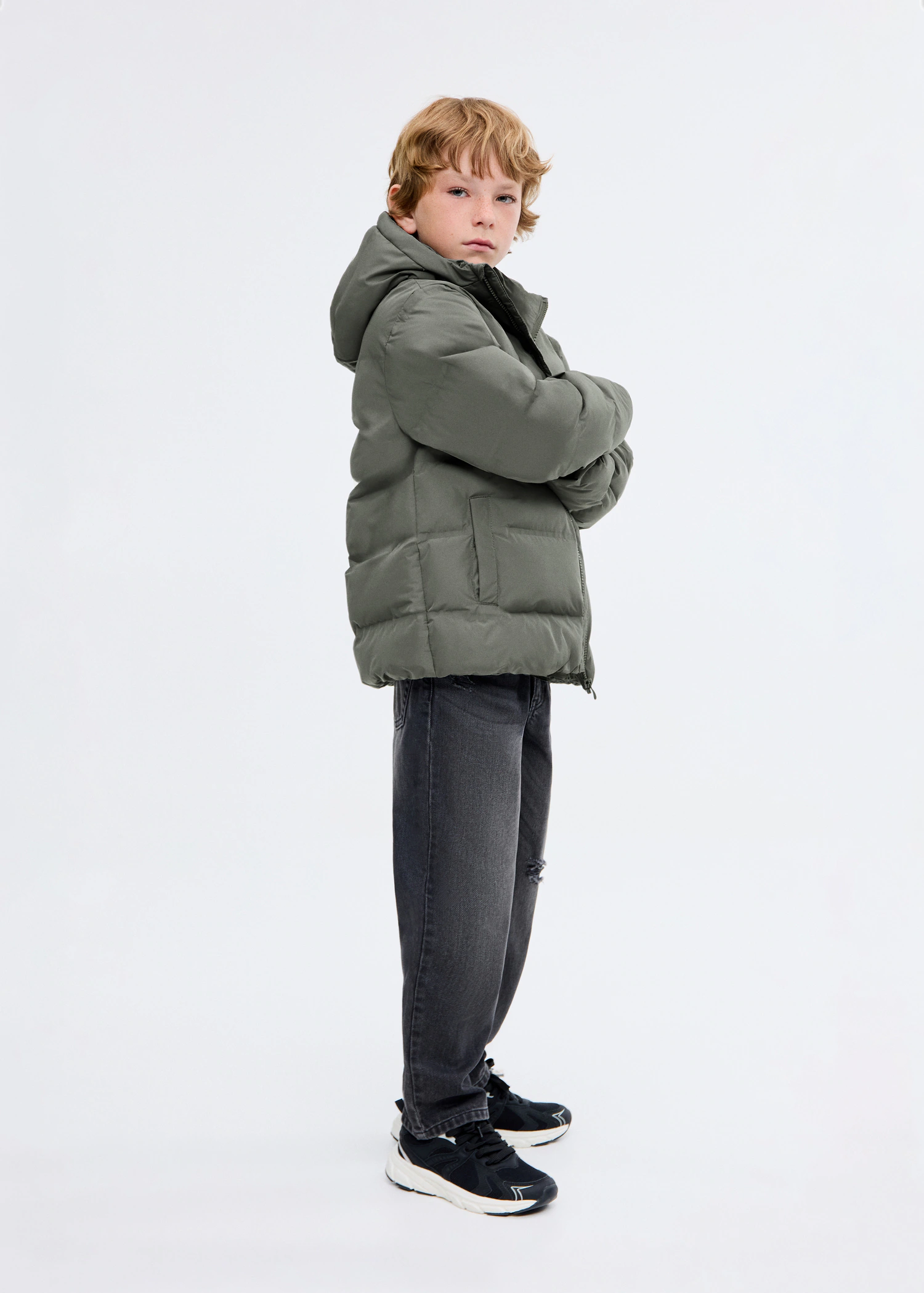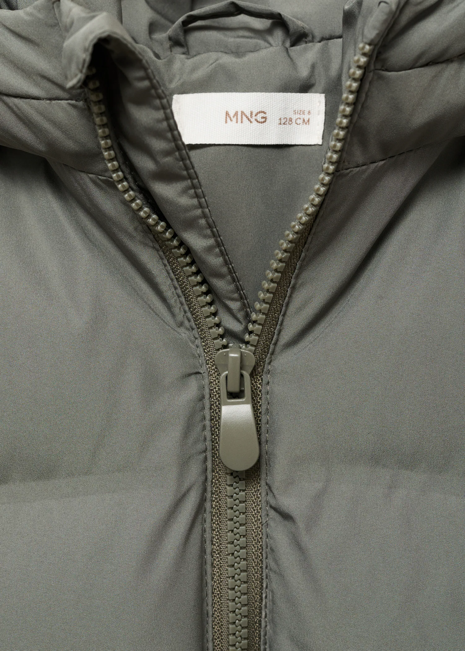 AçıklamaKapitone kumaş. Polyester kumaş. Düz kesim. Kapüşonlu. Esnek manşetli uzun kollu. Fermuar kapama. İki yan cep.