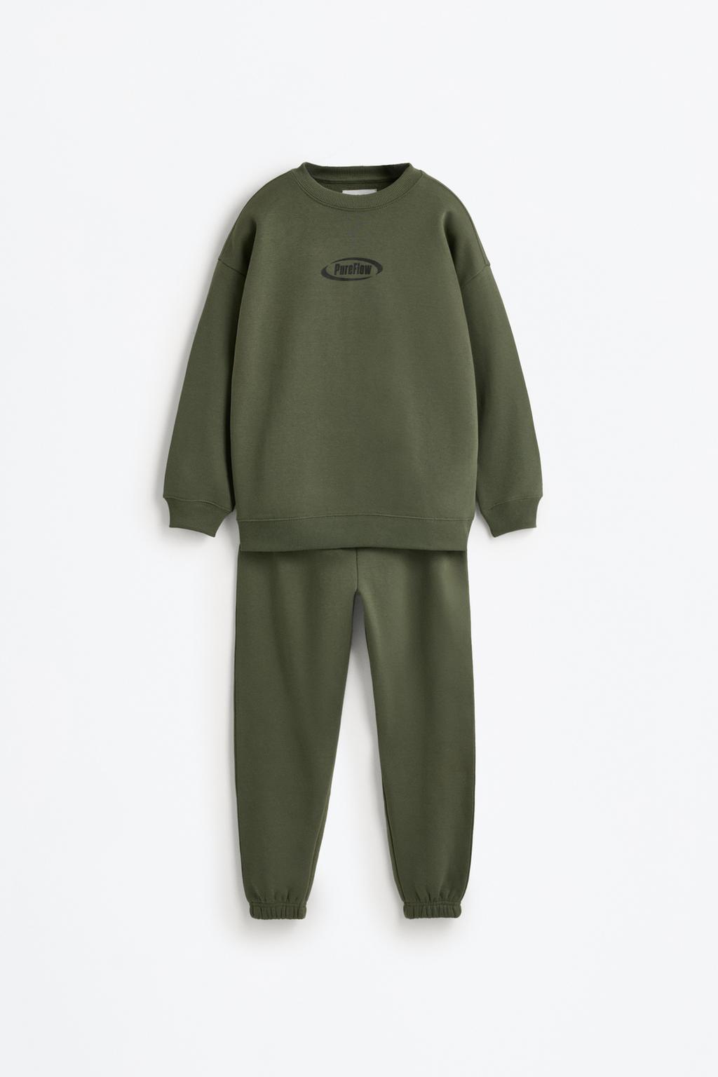 This adorable two-piece set features a cozy sweatshirt with a round neckline and stylish ribbed cuffs, complemented by matching pants with an elastic waistband and cuffed hems. Made from soft, flexible cotton fabric, this outfit is perfect for active play and comfortable lounging. Available in a trendy dark khaki color, it’s a fashionable choice for any young explorer looking to stay comfortable and stylish!
