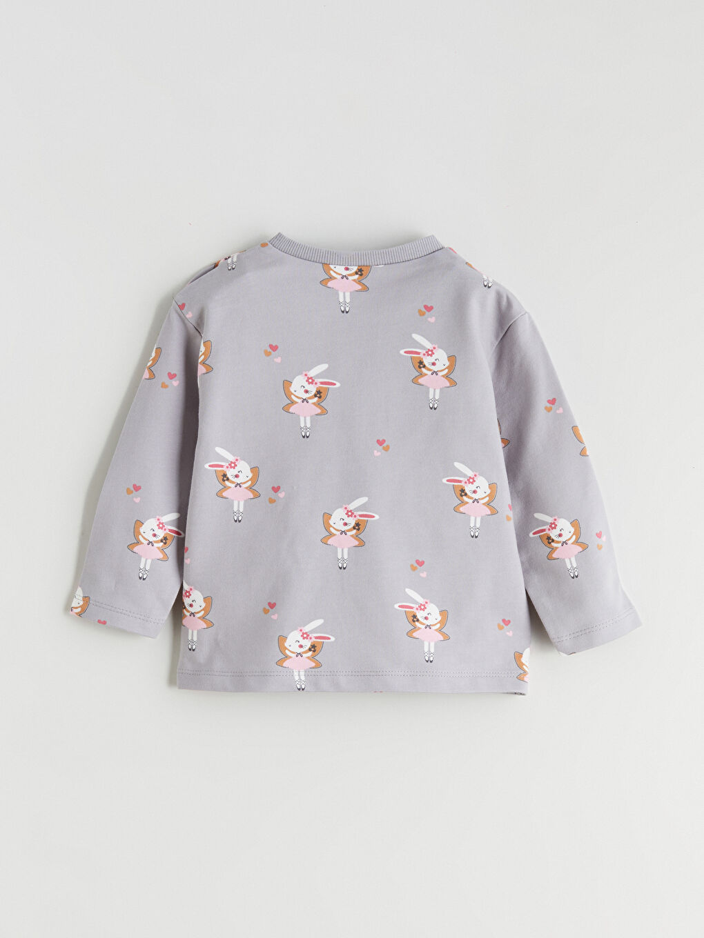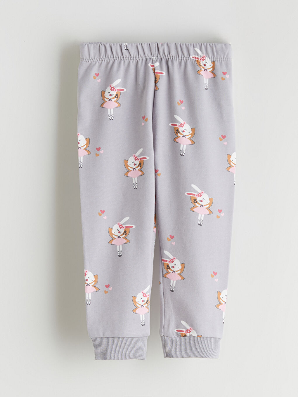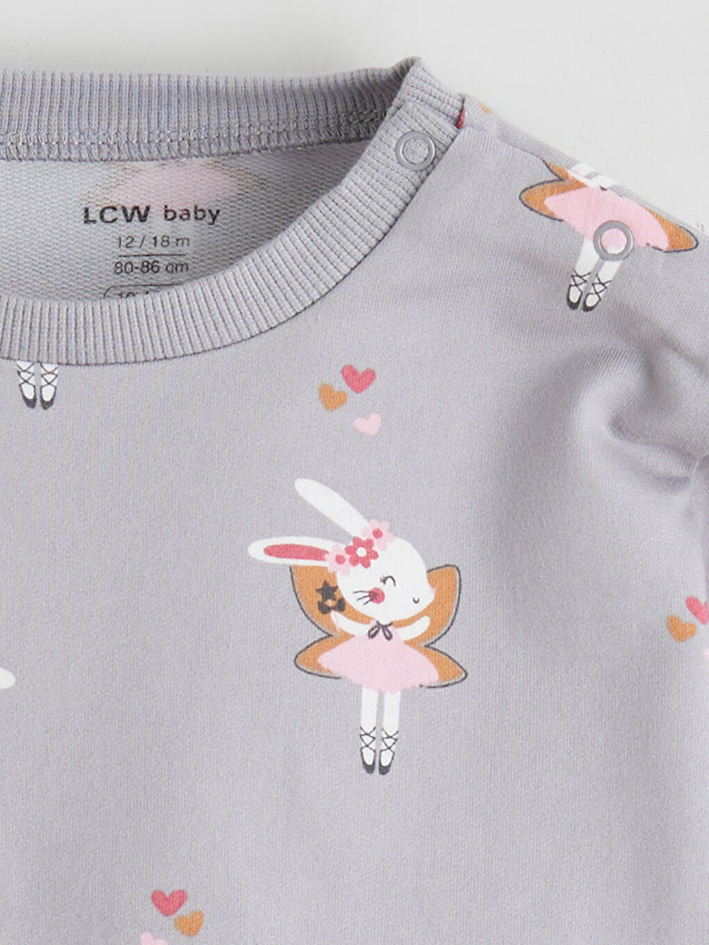 LCW Baby Gray Rabbit Print Girls Sweatshirt and Pants Set