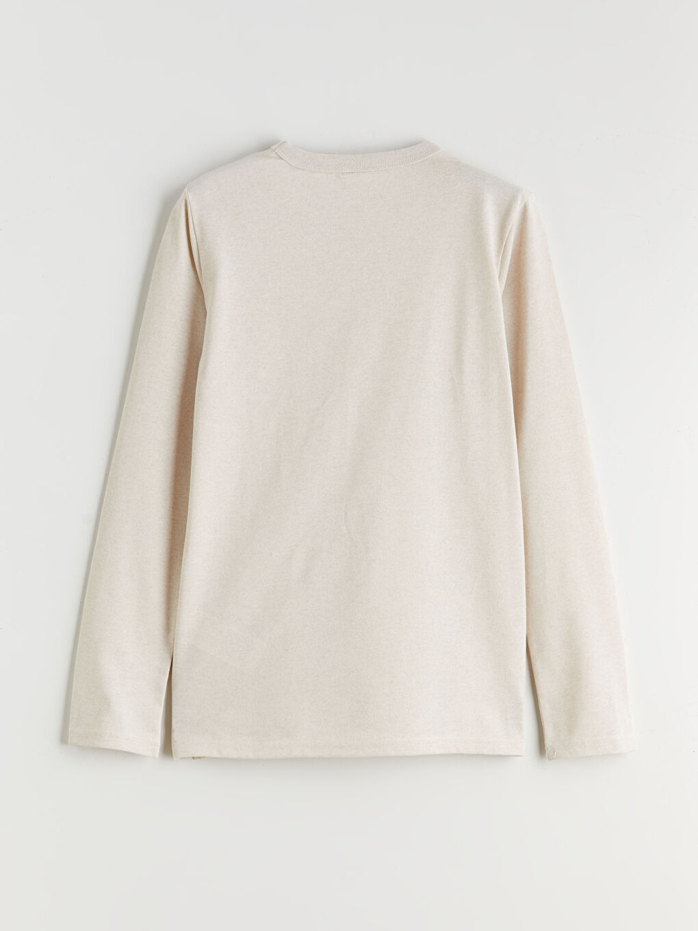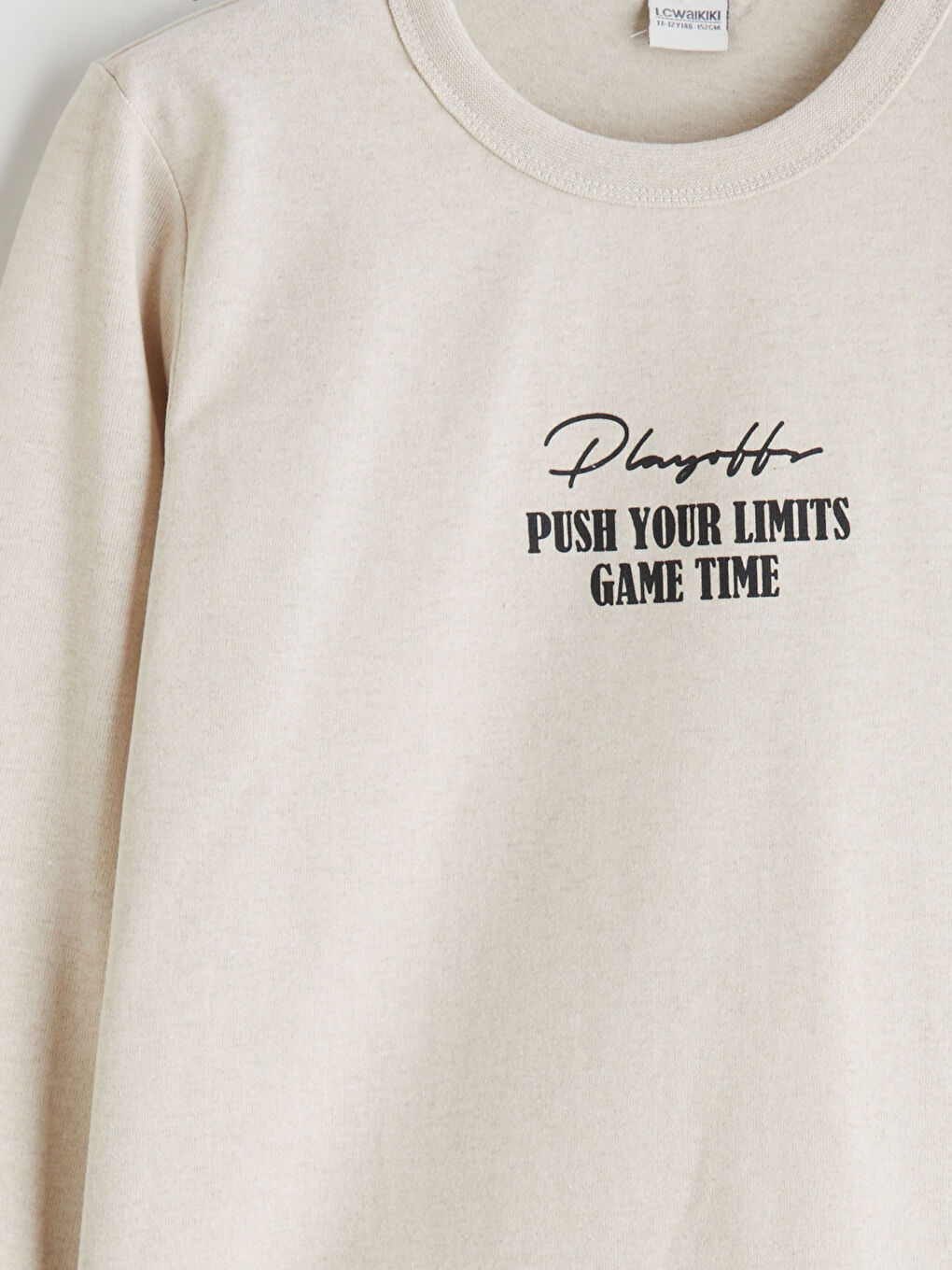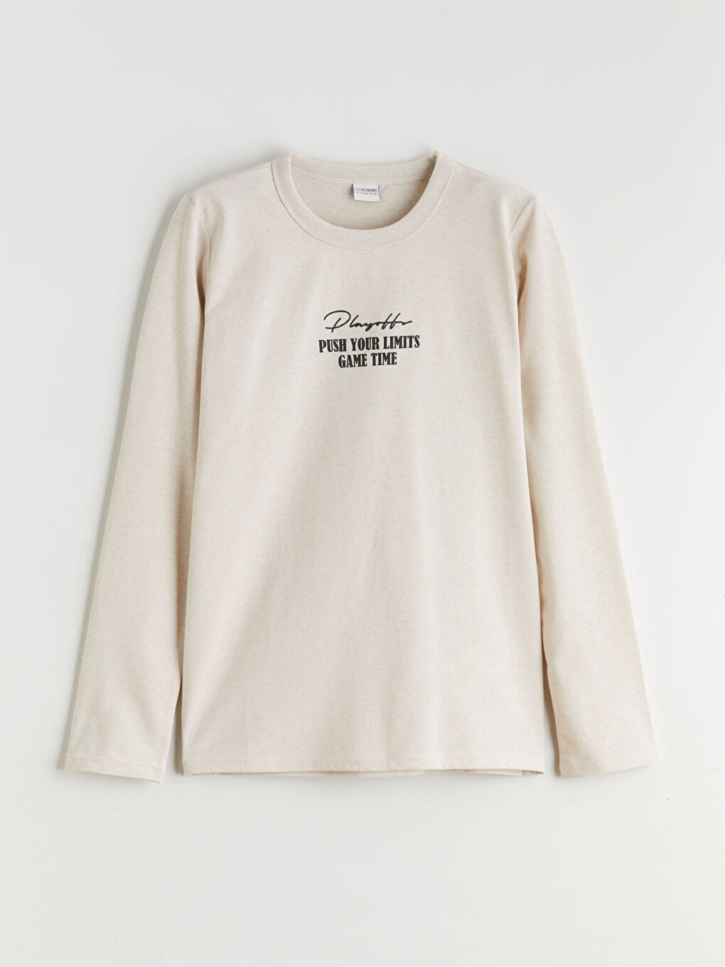 LCW Kids Beige Crew Neck Long Sleeve Boys T-Shirt