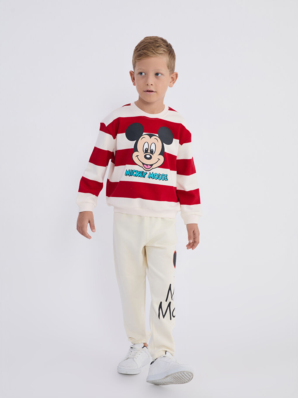 LCW Kids Beige Mickey Mouse Printed Crew Neck Sweatshirt