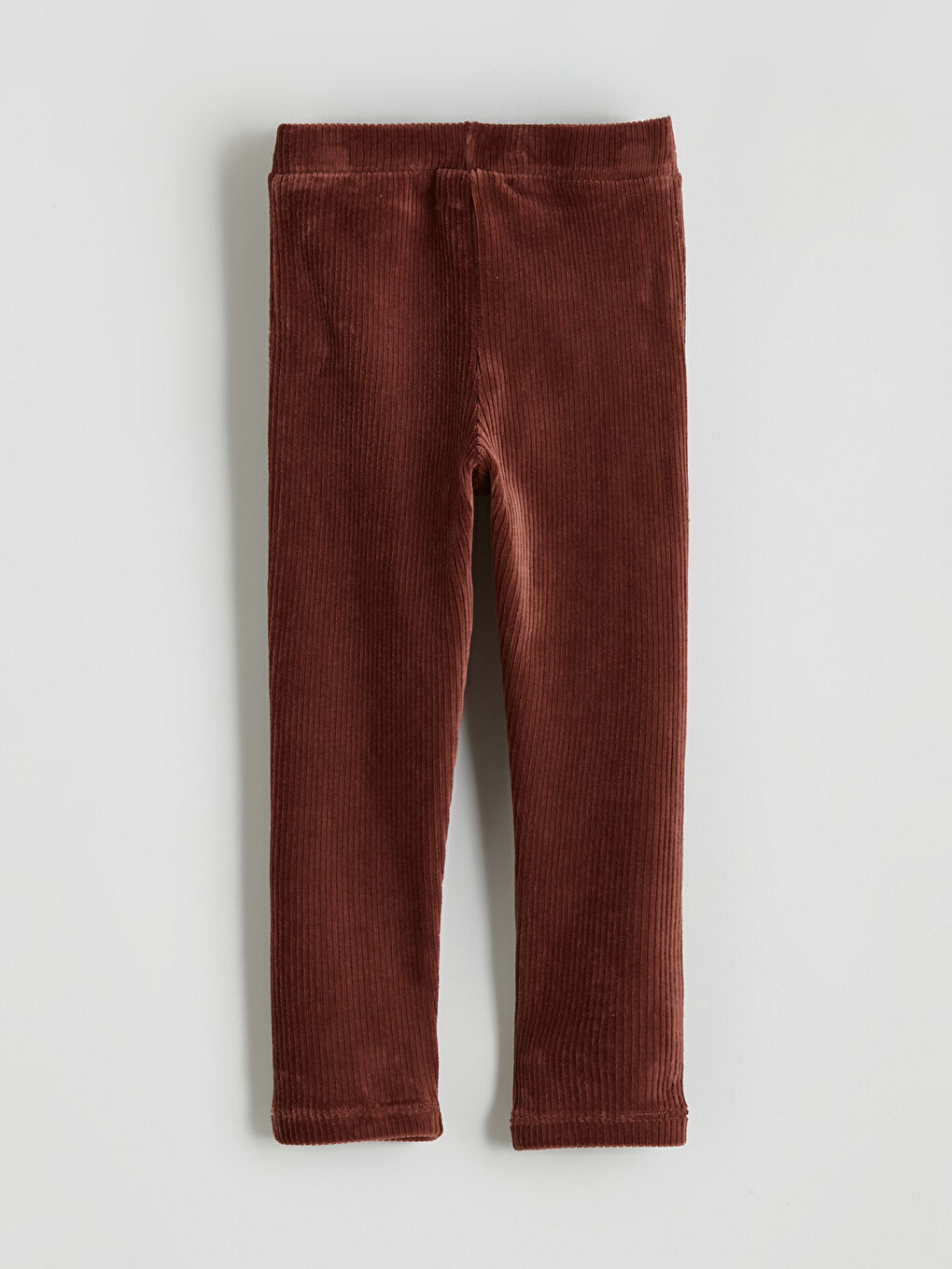 LCW Kids Brown Elastic Waist Basic Velvet Leggings for Girls